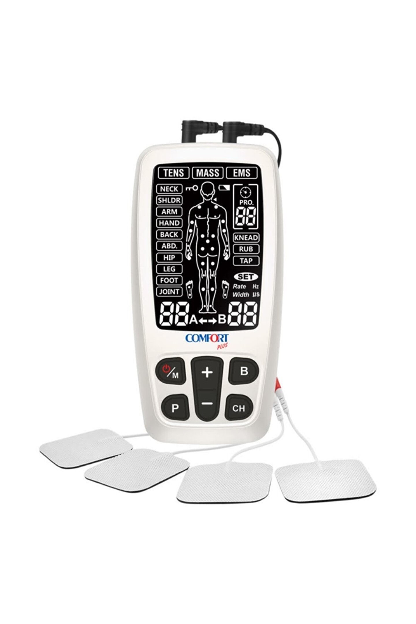 Comfort Plus R-C4A Şarj Edilebilir Tens Ems Masaj Stimülatörü Cihazı Comfort Plus R-C4A Şarj Edilebilir Tens Ems Masaj Cihazı Comfort Plus R-C4A Şarj Edilebilir Tens Ems Masaj Cihazı Masajı Ayağınıza Dek Getirir Sağlık sorunları ya da bazı ihtiyaçlardan dolayı masaj yaptırmanız gerekiyorsa Comfort Plus masaj cihazı sizlere uygun olabilir.; Çeşitli kaslarınızın rahatlamasını sağlayan bir sistem sayesinde bazı hastalıklarla mücadele edebilirsiniz.; Geniş Bir Kullanıcı Kitlesi Hemen herkes tarafından kullanılmaya uygundur.; Günün yorgunluğu atmak isteyen kişilerden tutun da fizik tedavi gören bazı kişilere kadar herkes tarafından tercih edilir.; Fiziksel durumuyla alakalı tedavi gören kişilerin hekimlere danışması gerekmektedir.; Kapsamlı Bir Masaj Oldukça geniş pedleri sayesinde bedeninizin hatırı sayılır bir kısmını eş zamanlı olarak rahatlatabilirsiniz.; Böylece profesyonel masaj hizmetinden aldığınız hizmeti evinizde tek başınıza elde edebilirsiniz.; Sadece birkaç tuşa basarak üzerinizdeki gerginliği almak mümkündür.; Sporculara Özellikle Tavsiye Edilir Profesyonel ya da hobi olarak sık sık spor yapan kişilerin kasları bir süre sonra fazla miktarda sertleşebilir.; Kasların haddinden fazla yıpranması sporcuların yaşam kalitesini düşürebilir.; Comfort Plus masaj cihazı sayesinde kaslarınızı gevşetebilirsiniz.; Kompakt Bir Tasarım Makul ölçülere sahiptir.; Sadece birkaç tane tuşla kontrol edilmektedir.; Bu sayede hemen herkes tarafından kullanılabilir.; Ekranı oldukça geniştir.; Böylece sayıları çok rahat bir şekilde görebilirsiniz.; Saklaması Gayet Kolay Uygun gördüğünüz herhangi bir çanta içerisinde muhafaza edilebilir.; Darbelerden etkilenmesini engelleyecek bir plastik malzeme kullanılarak imal edilmiştir.; Senelerce sizlere hizmet verir.