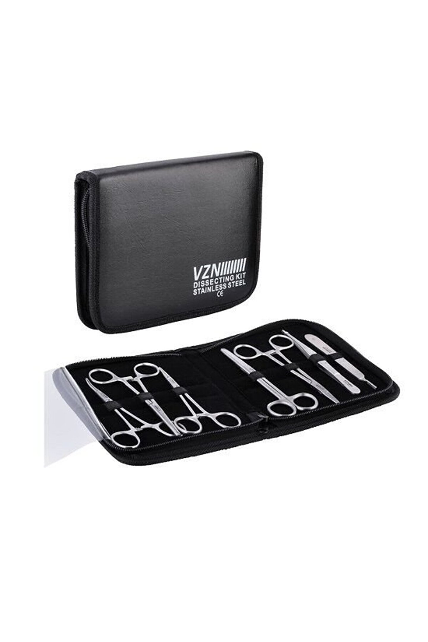 Cut Down Cerrahi Paslanmaz Dikiş Pansuman Seti 7 Cut Down Dikiş Atma Eğitim Sütür Pratik Kiti 1x Mayo Hegar 14 cm 1x Adson Penset 12 cm 1x Dikiş Makası 11,5 cm 1x Eğri Mosquito Forceps 12,5 cm 1x Bistüri Sapı No: 3 2x Bistüri 2x İpek Sütür 2.0 1x 3 Katmanlı 1. ; Kalite Silikon Cilt Doku Pedi 1x Deri Çanta;