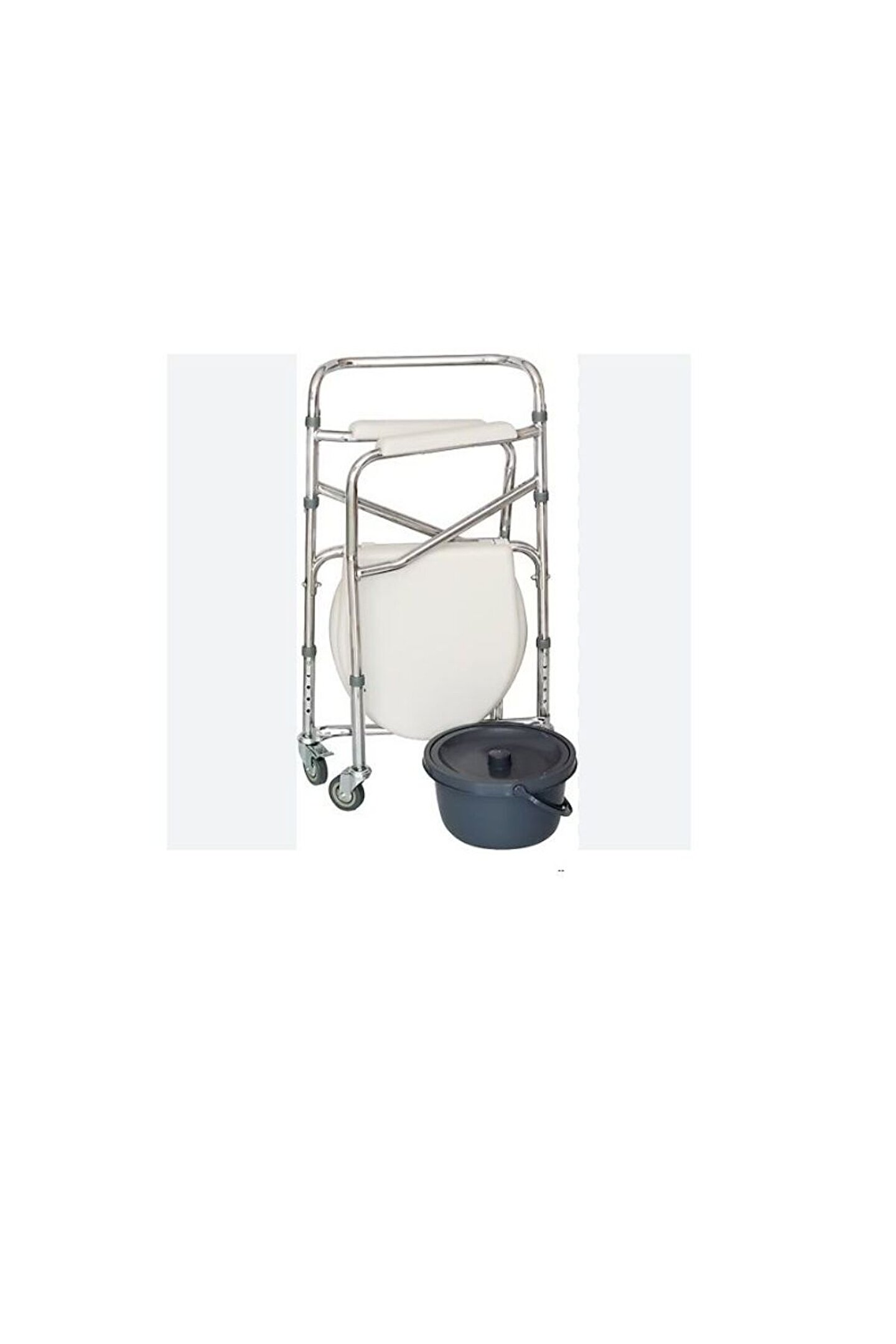 Yan Kolları Sabit 4 Tekerlekte Fren Sistemi 100 Kg Kapasiteli. İç Mekan Kullanıma Uygun Çelik Şase Korozyona Dayanıklı Nikelaj Kaplama Dolgu Ön ve Arka Tekerlekler Arka Tekerleklerde Sabitleme Sistemi Katlanabilir Yapısı Sayesinde Yer Kaplamaz Anti mikrobiyel Kapak Kapaklı Kova Klozet Yüksekliği: 36-46 cm