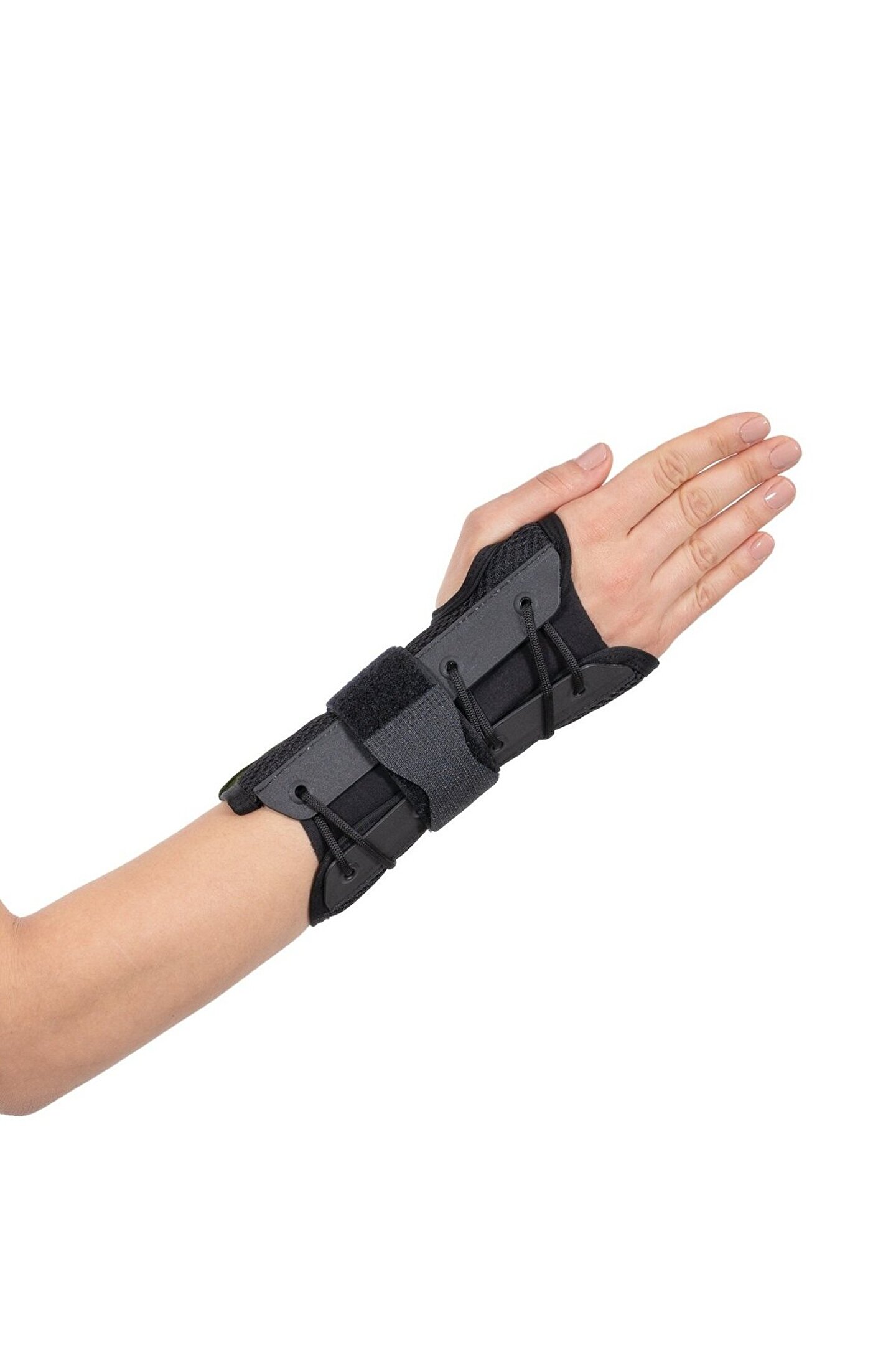 Bağcıklı El Bilek Ateli Fileli Hava alabilen fileli kumaştan üretilmiştir.; Bileğin nötral pozisyonda imobilizasyonunu sağlayan atel çeşididir.; İçerisinde 1 adet alüminyum ve üzerinde 2 adet plastik desteği mevcuttur.; Bilek çevresinde bağcıklı sistemde stabilizasyonu sağlayan bandajı vardır ve her iki elde de kullanılabilir.; Endikasyonlar Karpal Tünel Sendromu Tendon ve yumuşak doku hasarlarında Cerrahi müdahale sonrası rehabilitasyonda.; BEDENSİZ