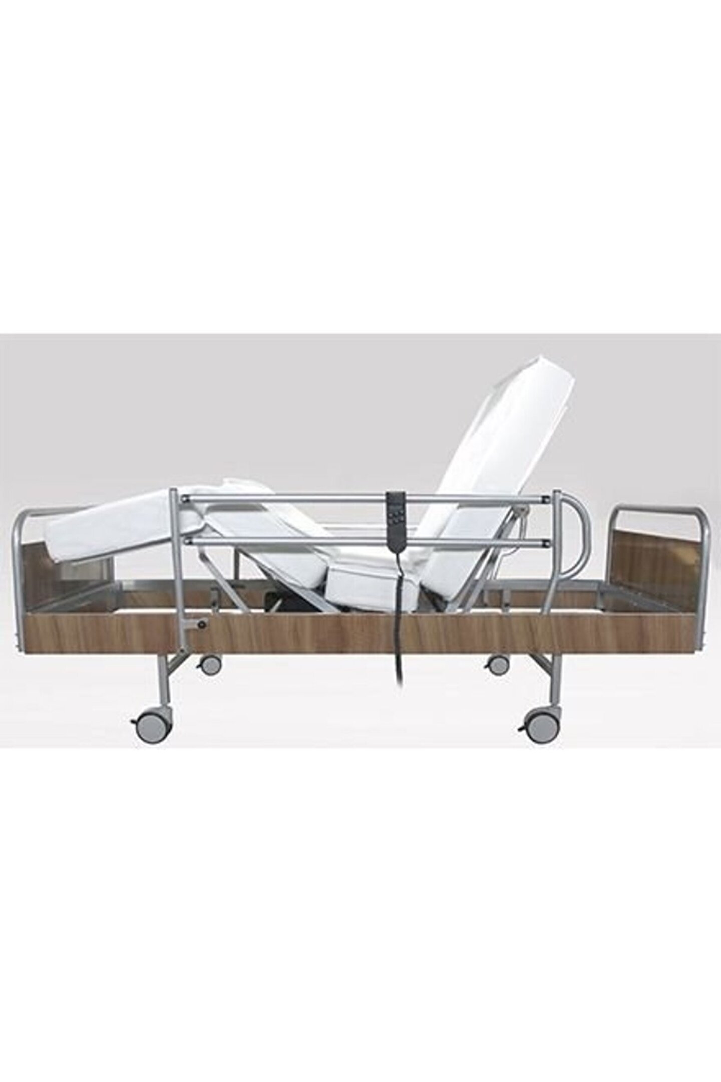 Emek hasta yatakları motorlu hasta 2 motorlu Sırt kısmı ve diz kısmı dual motor ile çalışmaktadır. ; • sırt kısmı 0 - 70 derece arasında ayarlanabilir. ; • diz kısmı 0 – 35 derece arasında ayarlanabilir. ; • el kumandası ile tüm fonksiyonlar kontrol edilebilir. ; • karyola yatak platformu travers sac ile kaplanmıştır. ; • sabit karyola başlıkları metal boru ile ahşap panelden imal edilmiştir. ; • korkuluklar metal olup alt kısmında bulunan pim vasıtası ile konforlu bir şekilde kapanıp açılabilir. ; •korkuluklar elektrostatik toz boyalıdır 1 adet serum asma aparatı bulunmaktadır. ; Bu askı karyolanın baş ucunda her iki yana takılabilir • 360 derece dönebilen dört adet tekerlek, ikisi fren tertibatlıdır. ; • tüm metal aksamı elektrostatik toz boya ile kaplanmıştır. ; Dış ölçüler: En: 1000mm - Boy: 2100mm - Yükseklik: 400mm yatak platformu: En: 900mm – boy: 1900mm;