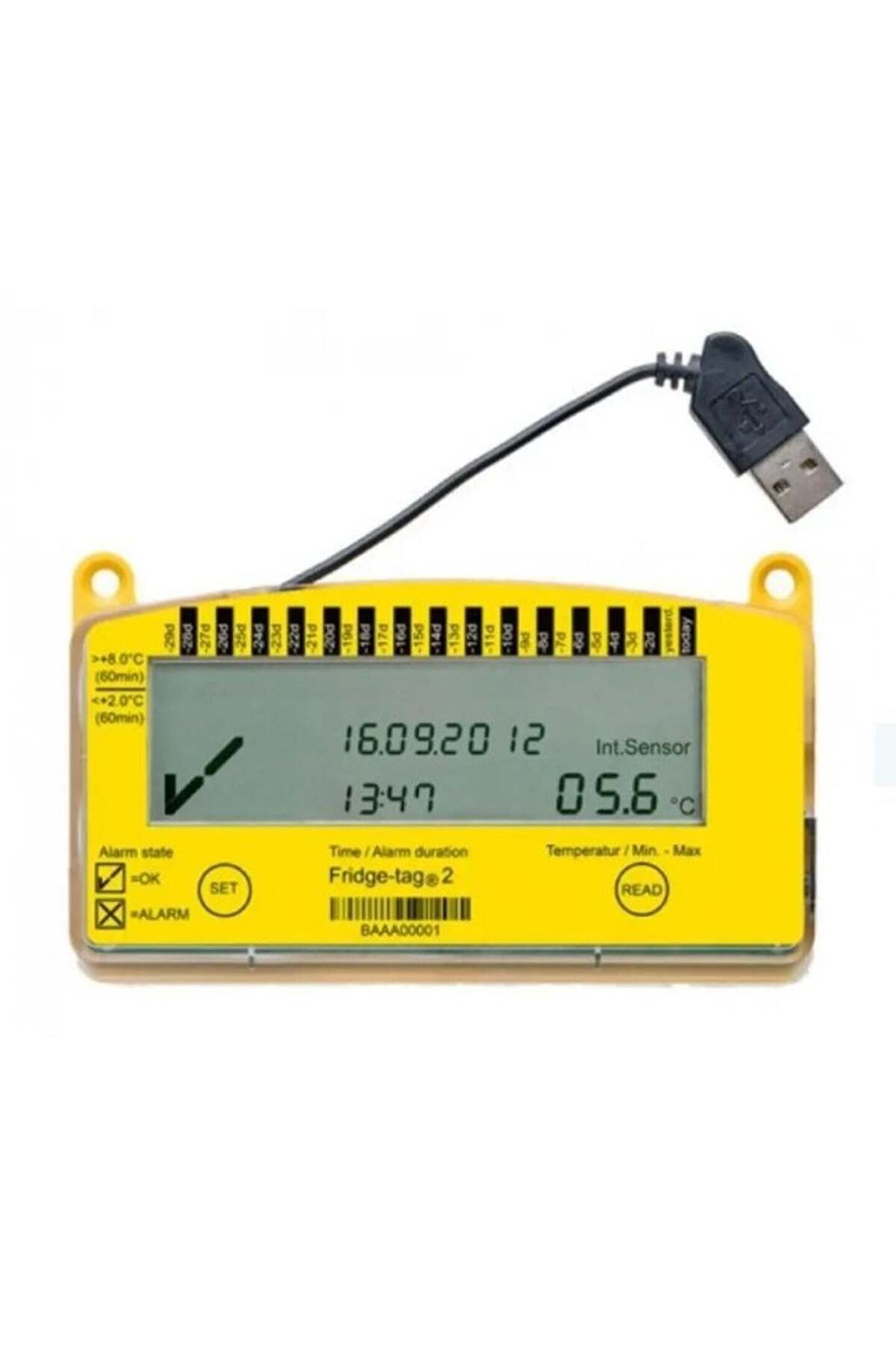 <p>Üst ve alt limit ayarlı alarmıyla yeni nesil fridge tag stoklarımızda! Fridge Tag 2'yi USB ile bilgisara bağlayıp son 60 günlük kayıtlarınızı kolaylıkla inceleyebilirsiniz. Aynı zamanda PC bağlantısı yapmadan direk ekranından son 30 güne ait kayıtları inceleyebilirsiniz.</p>