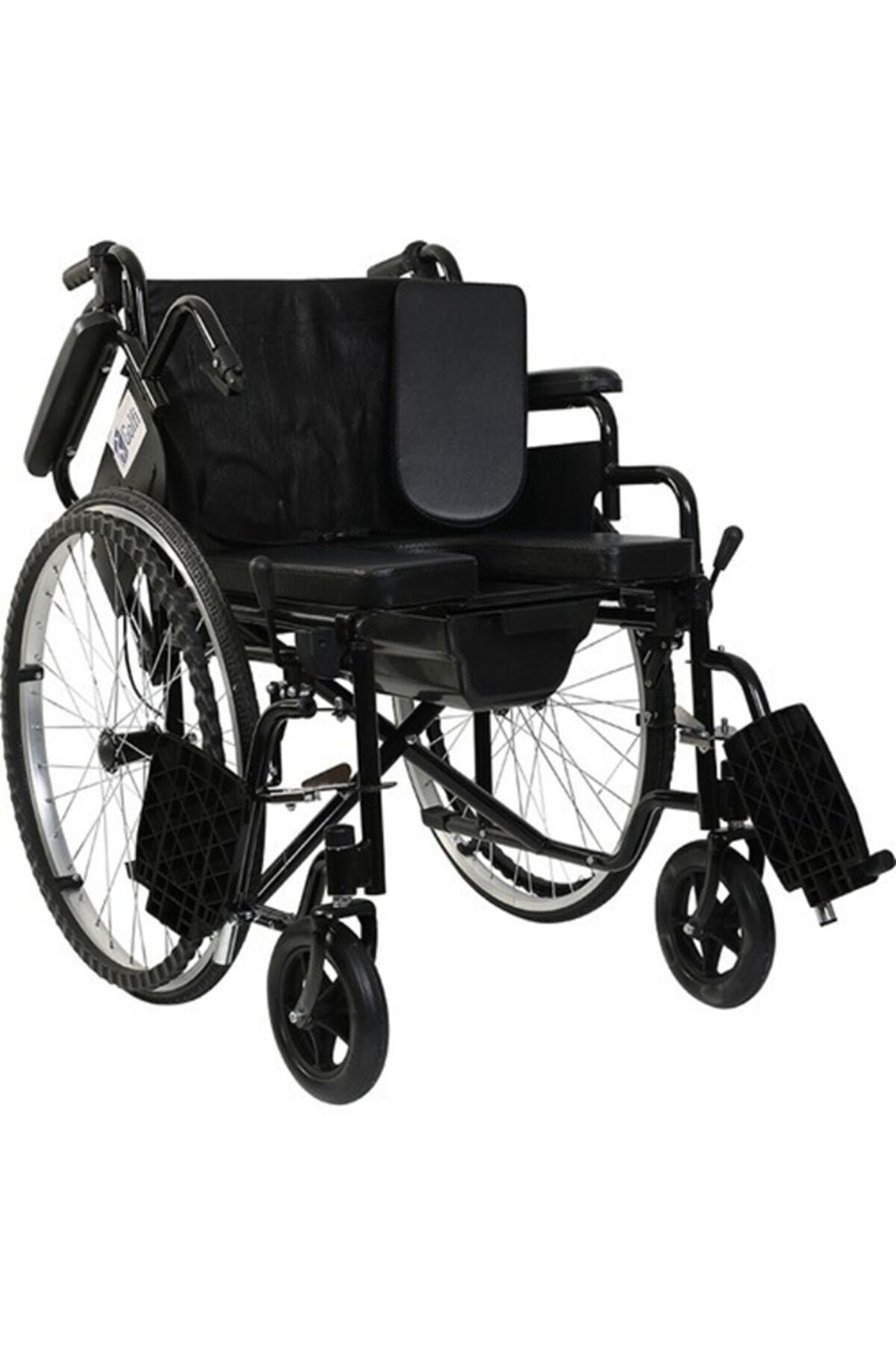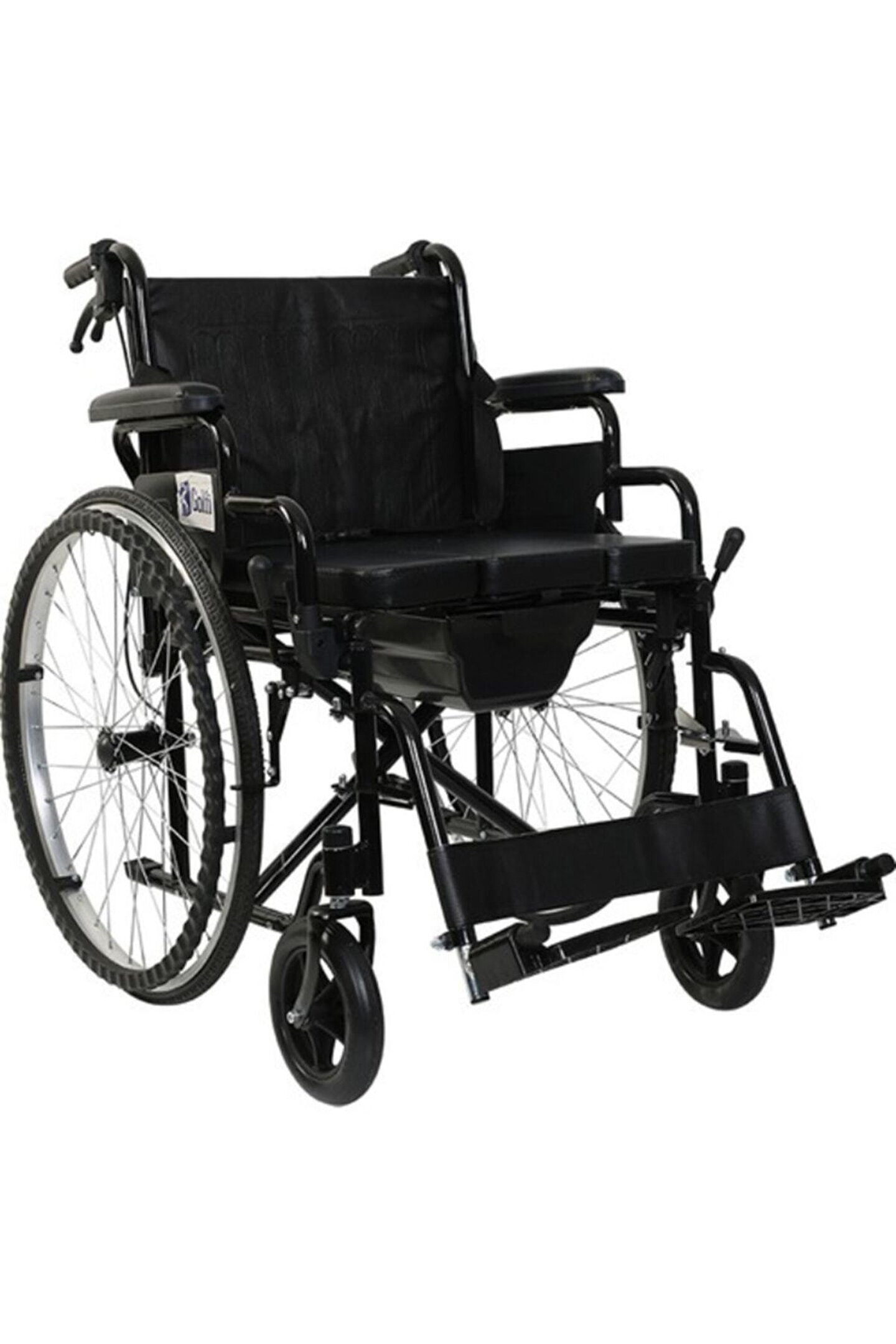 g; 120 klozetli manuel tekerlekli sandalye / commode manual wheelchairklozetli tekerlekli sandalye • çıkarılabilir kolçaklar kullanıcının yatak, araba vb; Alanlara transferini kolaylaştırır; • katlanabilir gövde yapısı taşıma ve depolama kolaylığı sağlar; • çıkarılabilir ayaklıkları sayesinde asansör vb; Dar alanlarda ekstra manevra kabiliyeti sağlar; • kullanıcının tuvalet ihtiyacını karşılayabilmesi için lazımlık şeklinde oturma yeri ve koku önleyici kapaklı lazımlık kovasına sahiptir; • basamak atlatma çubuğu, el tutaçları ve refakatçi frenleri sayesinde refakatçi kullanımına uygundur; • vinil döşeme, uzun süreli kullanımlarda bakteri oluşumunu engeller; Oturma yeri genişliği : 46 cm oturma yeri derinliği : 43 cm oturma yeri yüksekliği : 54 cm oturma yeri açısı :; sırtlık yüksekliği : 37 cm kolçak yüksekliği : 17 cm toplam genişlik : 66 cm toplam yükseklik : 90 cm toplam uzunluk : 102 cm katlanır genişlik : 29 cm arka tekerlek : 24’’ pu dolgu ön tekerlek : 6 ’ pu dolgu materyal : Çelik tilt özelliği :; ürün ağırlığı : 20; 10 kg maksimum taşıma kapasitesi : 110 kg koli ölçüleri : 81×28×90 cm konteyner yükleme adetleri : 140 ad/20’dc, 354 ad/40’hq commode wheelchair • easy transferable to bed,car etc; With detachable armrests; • foldable frame for easy transport and storage; • detachable footrests offering easy storage and extra maneuverability into narrow places, elevators etc; • the seat designed as a toilet apparatus for eliminate needs with deodizer bucket; • curb climb sticks, handles and united attendant brakes for convenient attendant usage; • anti; Bacterial upholstery protects the user againist to bacterial infections while seated; Seat width : 46 cm seat depth : 43 cm seat height : 54 cm seat angle :; backrest height : 37 cm armrest height : 17 cm overall width : 66 cm overall height : 90 cm overall length : 102 cm folded width : 29 cm rear wheel : 24’’ pu filled front wheel : 6’’ pu filled material : Steel seat tilt :; product weight : 20; 10 kg maximum loading capacity : 110 kg dimensions of carton : 81*28*90 cm loading quantities for containers : 140 pcs/20’dc, 354 pcs/40’hq;;