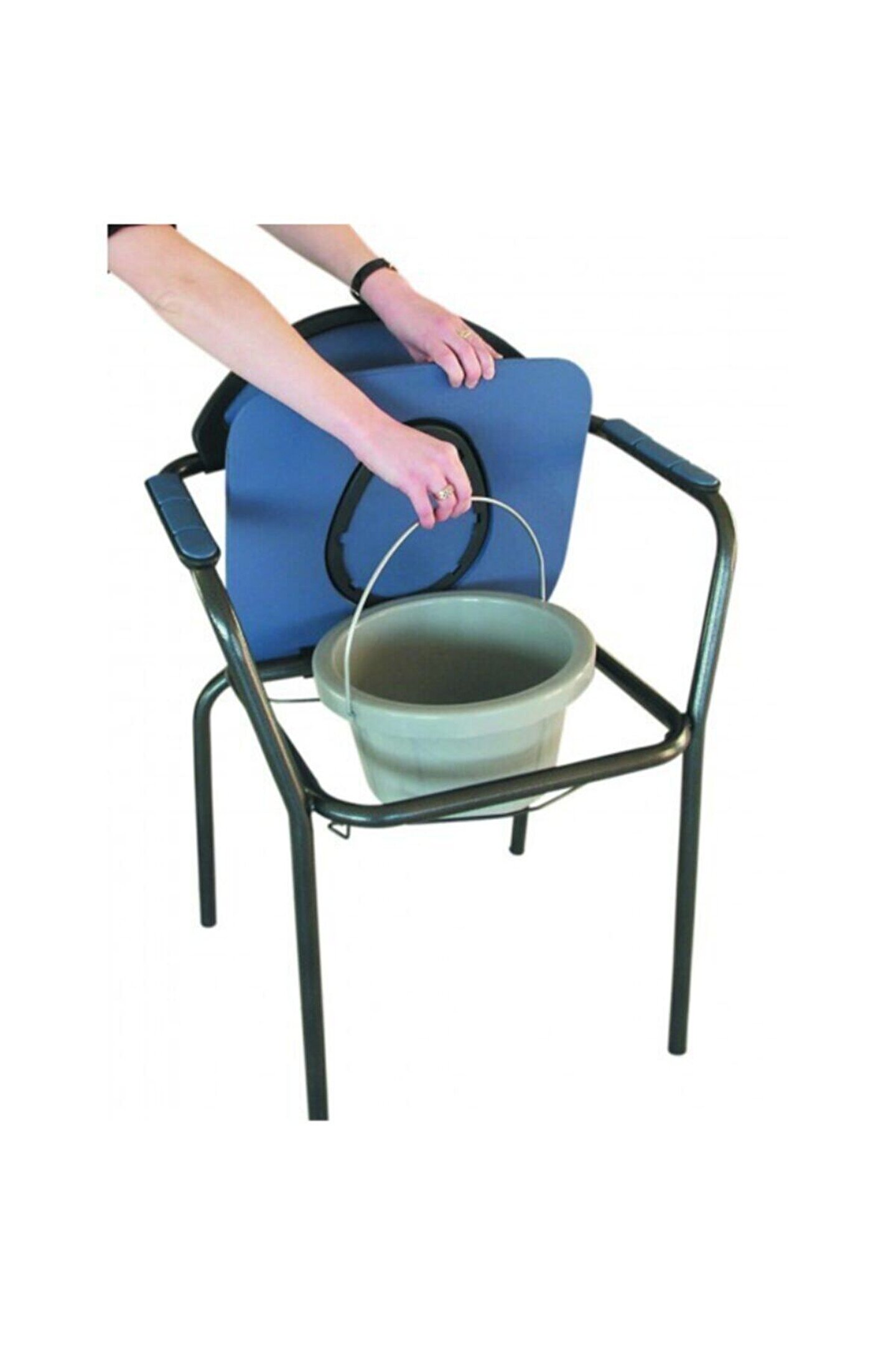 Open klozetli sandalye, modern ve konforlu tasarımı sayesinde avrupa'da en çok satılan modelimizdir; Sağlam metalik yapısı, gri epoksi boya kaplamadır; Kalın oturağı ve sırtlığı su geçirmez; Oturağı, çerçevesine klipsler tarafından tutturulur ve kolaylıkla temizlenir; Kovası, üstten ve yandan çıkarılma özelliğine sahiptir; Yerden yüksekliği: 52 cm Yüksekliği: 86 cm Genişliği: 60,5 cm Iki kolluk arası genişliği: 51; 5 cm Ağırlık: 6; 6 kg 130 kg taşıma kapasitesine sahiptir; ;;