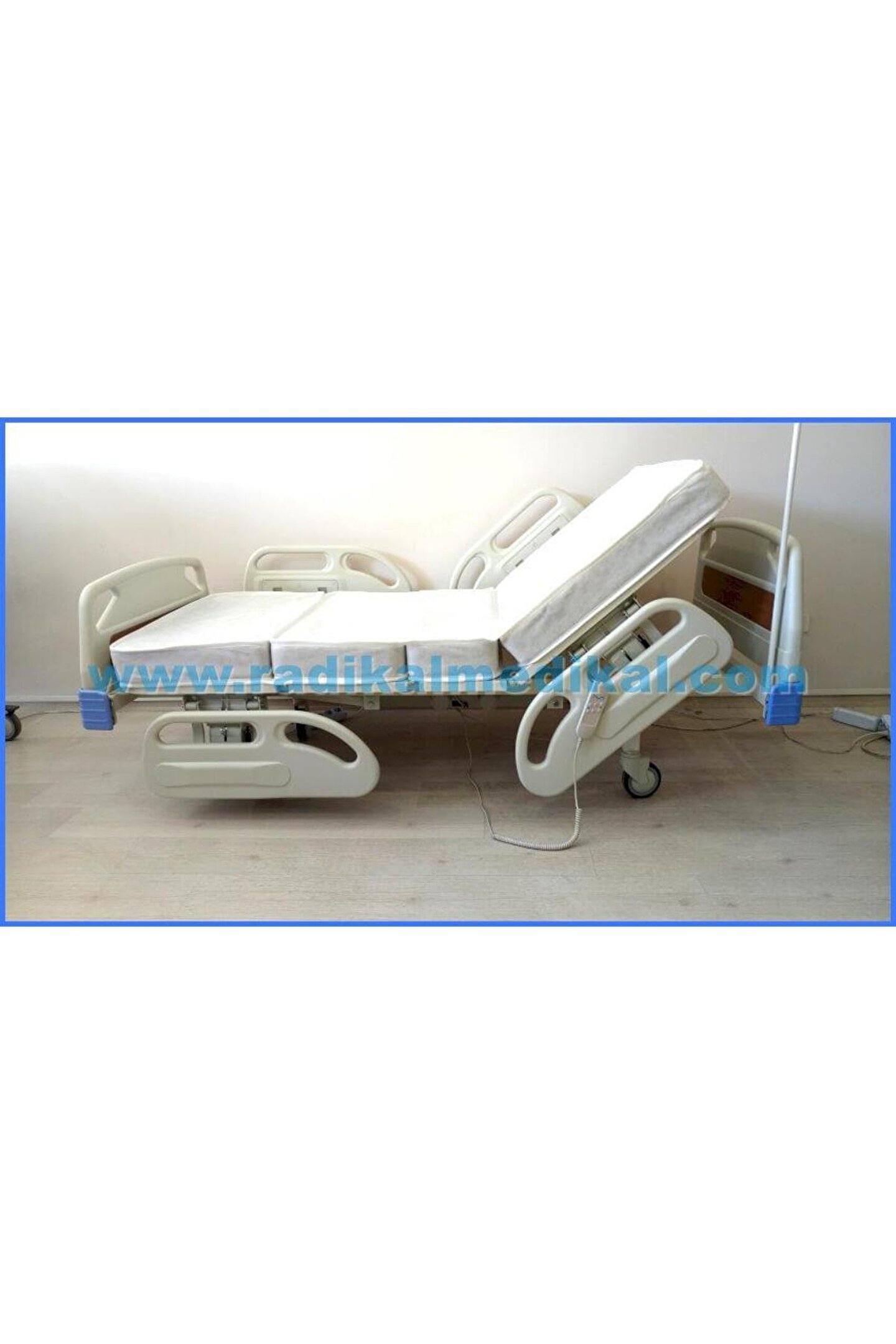 İki Motorlu Ev Tipi Hasta Karyola Hasta Karyolası Teknik Özellikleri İki motorlu ev tipi hasta karyola Full Abs Elektrikli Hasta Karyolası üst platformunda bulunan hava delikleri sayesinde terleme önlenmiş olur. ; Karyolanın dört köşesinde serum askısı takma yerleri mevcuttur. ; Baş ve ayak kısımları elektrik motorları sayesinde kolayca hareket eder. ; Elektrikler kesildiğinde 9 voltluk pil desteğiyle çalıştırılması mümkündür. ; Başlık ve Yan Korkuluk Özellikleri . ; Yan korkuluklar ABS malzemeden imal edilmiş birbirinden bağımsız, 4 adet amortisörlü korkuluktan oluşmaktadır. ; Amortisörler sayesinde kolayca indirilebilir. ; Amortisörleri sayesinde kolay kullanıma sahiptir. ; İki motorlular arasında en çok tercih edilen üründür. ; Karyola başlıkları abs malzemeden yapılmıştır, kolaylıkla temizlenebilir, antibakteriyeldir. ; Baş ve ayak kısımları kaldırılıp indirilebilir. ; Kumanda ile otomatik hareket verilir. ; Yan korkuluklar ABS bağımsız amortisörlü sistem ile tamamen indirilebilir. ; Korkuluklar hijyene müsait, mikrobik oluşumları önleyici özelliktedir. ; 4 parça pp malzemeden imal amortisörlü korkuluklar Tekerlekler 360 derece dönebilen, paslanmayan, güçlendirilmiş plastik tekerlekler. ; Çapraz kilit sistemi ile karyola tamamen sabitlenir. ; . ; Bu hasta yatağı baş ve ayak hareketi kabiliyetine sahip olup elektrik motoru sistemi ile çalışır.;