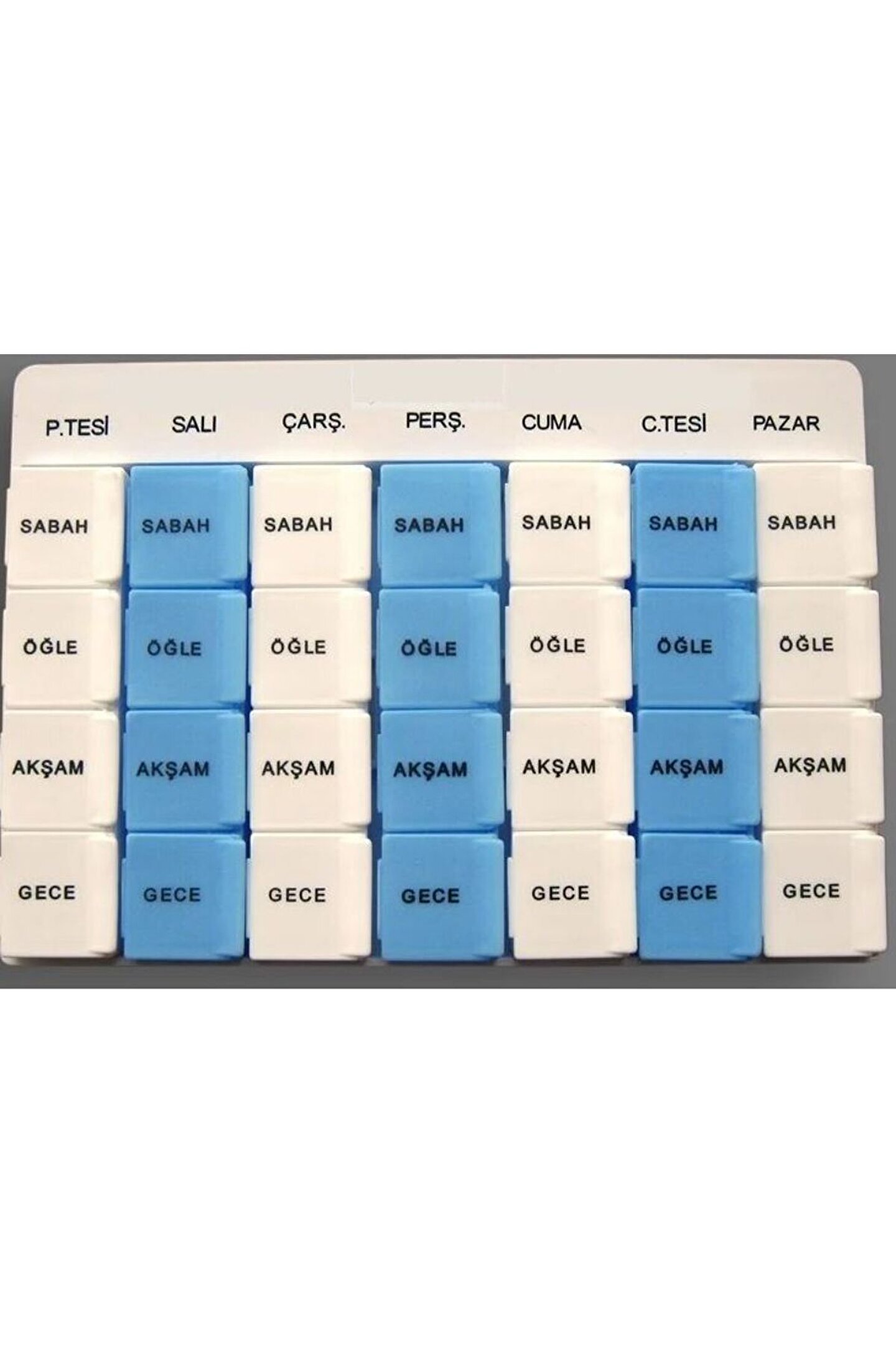 İlaç Saklama Kutusu Haftalık 28 Kutusu Haftalık Ilaç Saklama Kutusu 28 Gözlü- İlaç saklama kutusu, her gün dört öğün (sabah öğle akşam, yatarken) olmak üzere bir haftalık ilaç kullanımı için tasarlanmıştır.; Hafif ve fonksiyoneldir.; Bu kutuyu kullanan hastalar, ilaçlarını zamanında ve eksiksiz alacakları gibi, birden fazla ilaç kullanan hastalar da ilaçlarının hepsini tek bir kutuda bulundurma ve taşıma kolaylığına sahip olacaklardır.; Çalışanlar, seyahat edenler, ilaçlarını düzenli alma alışkanlığı olmayanlar, yalnız yaşayan yaşlı ebeveynlerinin zamanında ve doğru doz ilaç kullanmasını isteyenlerin tercih edeceği ve ilaç alımını kontrol etme imkanı sağlayan fonksiyonel bir kutudur.; Boyutları: Yükseklik: 12.5 cm Derinlik: 1.7 cm Alt Gövde Eni: 18 cm Üst Kutular Yükseklik: 10 cm Kutuların Gözlerinin derinliği: 2 cm Eni: 2.3 mm