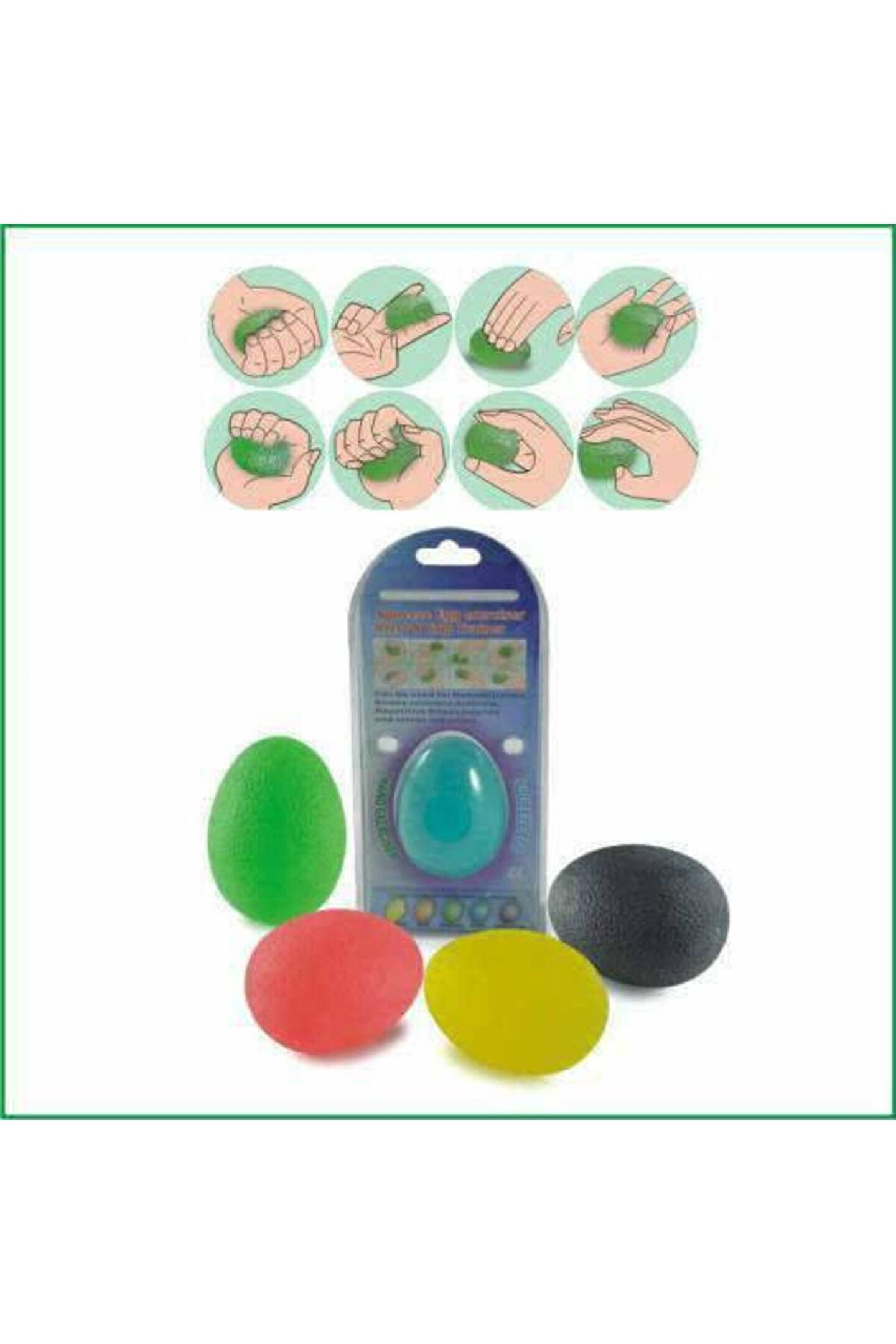 Joints - Yumurta El Rehabilitasyon Masaj Topu Sarı Squeeze Balls, 5 farklı dirençte özel formülüyle hazırlanmış egzersiz araçlarıdır. ; Elleri, parmakları, önkolu ayrı ayrı veya bir arada çalıştırır. ; Bu ürün rehabilitasyon amaçlı kullanıldığı gibi, spor veya rahatlama amaçlı da kullanılabilir. ; Özellikle el ameliyat sonrası parmak kaslarını güçlendirir. ; Aynı zamanda etkili bir kan pompalama sistemidir. ; Renk ve Dirençleri: Sarı - Ekstra Hafif Portakal - Hafif Yeşil - Orta Mavi - Sert Siyah - Ektra Sert Sipariş verirken lütfen istediğiniz rengi mesaj atınız;