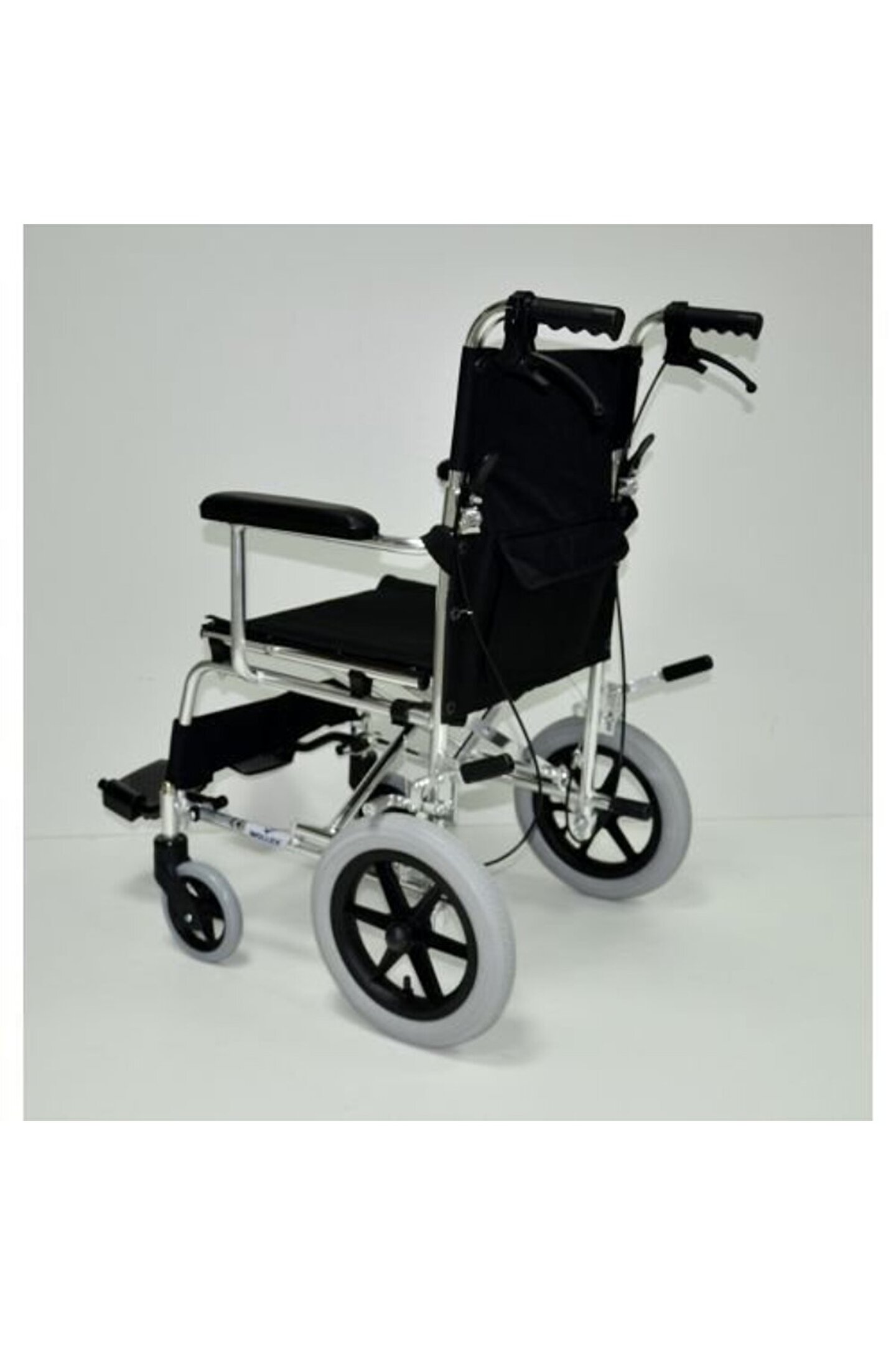 Ürün Tanıtımı •Alüminyum hafif gövde. •Sabit kolçaklar. •Geriye kalkabilen ayak kısımlar. •Dolgu ön tekerlekler. •Havalı arka tekerler. •Arka tekerlekler de sabit fren tertibatı. •Kampana fren killitleme. •Sırt Dinlenme Yeri Katlanabilir. Katlanabilir Refakatçı Tekerlekli Sandalye Teknik Özelikleri : •Ağırlık : 9,6 kg •Dış Genişlik : 65 cm •Oturma Genişliği : 46 cm •Oturma Derinliği : 42 cm• •Oturma Yüksekligi : 43,50 cm •Arka Tekerlek Yüksekliği : 31cm •Ön Tekerlek Yüksekliği : 15 cm •Yükseklik : 87 cm •Taşıma Kapasitesi : 100 kg.