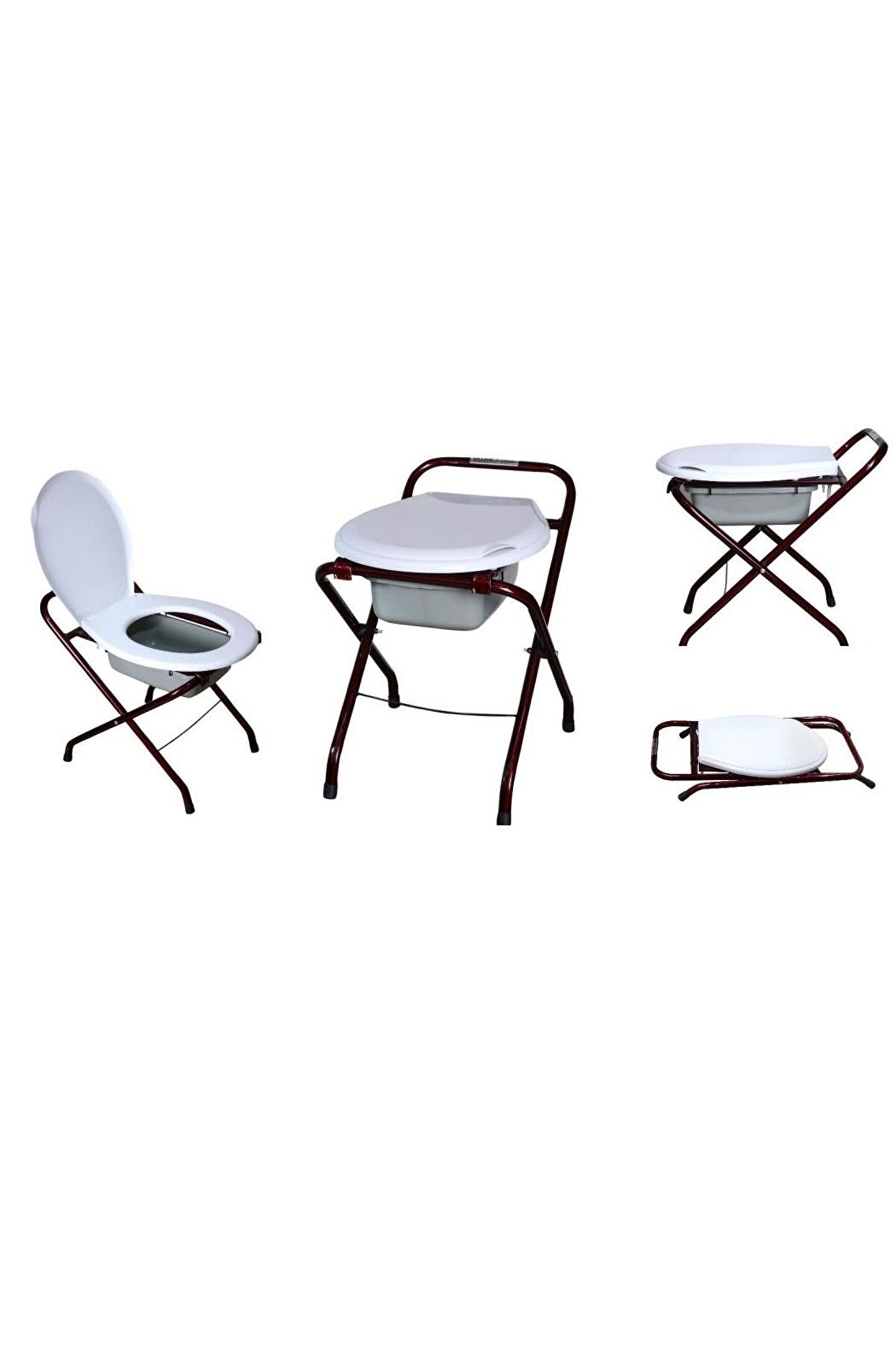 Kolayca katlanabilir özelliklidir.; Ergonomik tasarıma sahiptir.; 21mm’lik özel çelik borudan imal edilmiştir.; Hafif ve sağlam üründür.; Ürünün toplam ağırlığı 3000gr’dır (+50gr).; Alt sürgü kısmında çıkarılabilir kova bulunmaktadır.; Plastik çöp poşeti ile kullanılabilir.; Orta boy çöp poşeti ile uyumludur.; Üst kısında İki kademeli PVC klozet kapağı mevcuttur.; Yüksek kalite elektrostatik (EST) boyalıdır.; Korozyon ve çizilme olmaz.; Farklı renklerde üretilebilir.; Her bir ürün tekli poşet ambalaj içerisindedir.; Ürün Ölçüleri : En:40cm , Boy:50cm , Oturma Yüksekliği:50cm.