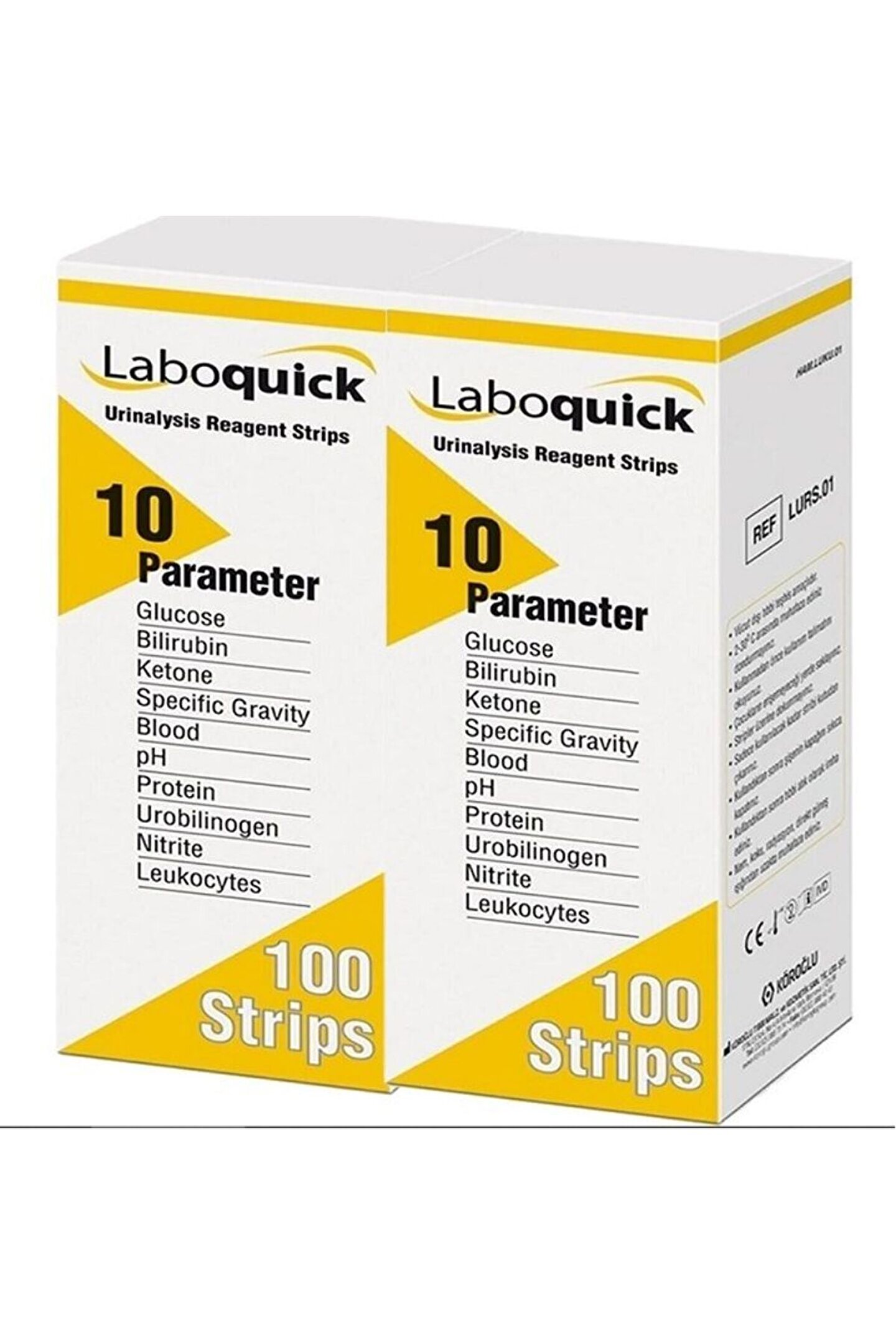 Laboquick İdrar Analiz Stribi (10 PARAMETRE-100 Test) aboquick 10 Parametre Stribi Glükoz, Bilirubin, Keton (Asetoasetik asit) Özgül Ağırlık Kan (Hemoglobin) Ph Protein (Albümin) Ürobilinojen Nitrit (Nitrit İyonu) Lökosit tayinini kısa sürede en doğru şekilde da yapan strip testleridir. ; CE BELGELİDİR Sağlık Bakanlığı Onaylıdır. ; Ürünün Fiyatına Kargo Dahildir.;