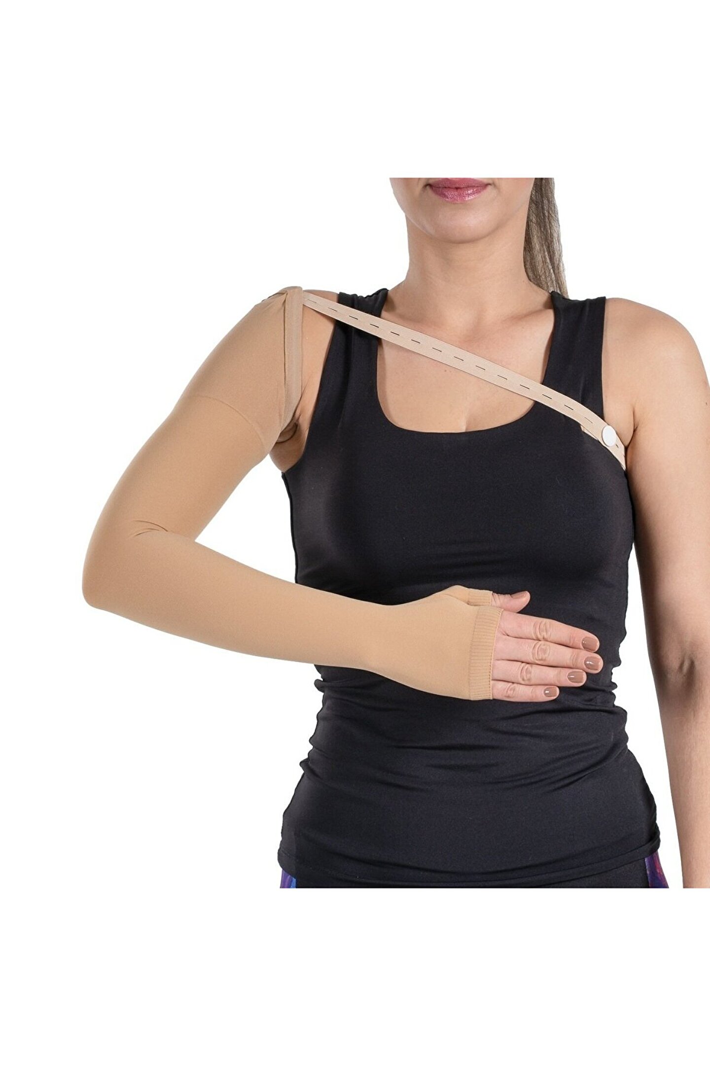 <h1>Lenf Ödem Kolluğu Askılı Numara 6</h1>W1324 Lenf Ödem Kolluğu AskılıParmaktan omuza kadar olan bölgede oluşan ödemlerin giderilmesi için kullanılan bir kolluk çeşididir. Omuz bölgesinde bulunan kemeri sayesinde günlük kullanımı rahattır.ÖLÇÜ TABLOSU 4. RESİMDE MEVCUTTUR..