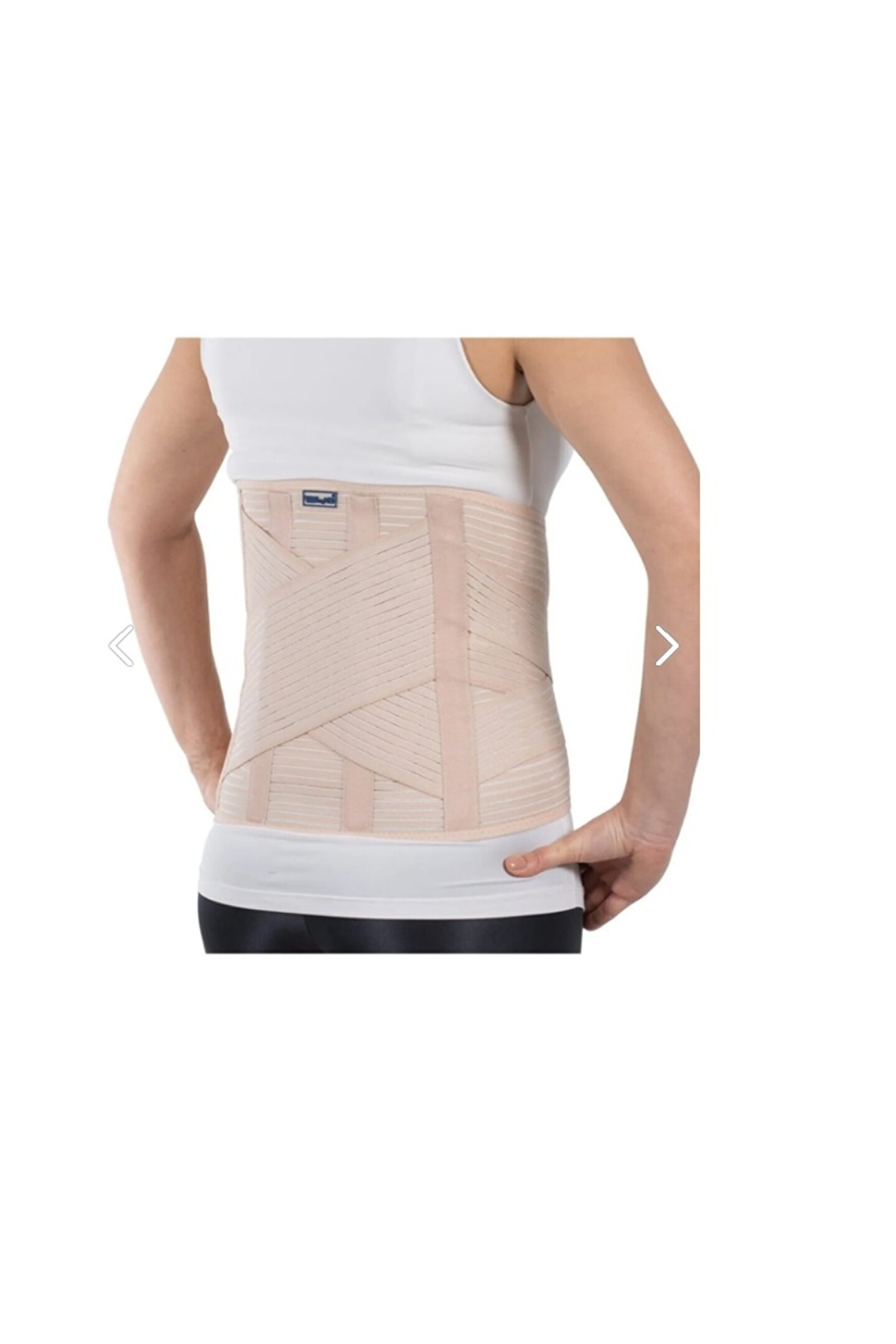 32 cm yüksekliğinde bel ve sırt bölgesini destekleyen hava alabilen kumaştan üretilmiştir. ; Sırt bölgesinde 2 adet sabit plastik destek ve 2 adet çikarılabilir çelik destek mevcuttur. ; Sırt bölgesinden göbek bölgesine 2 adet çapraz bantlı kemer stabilizasyonu sağlar.;