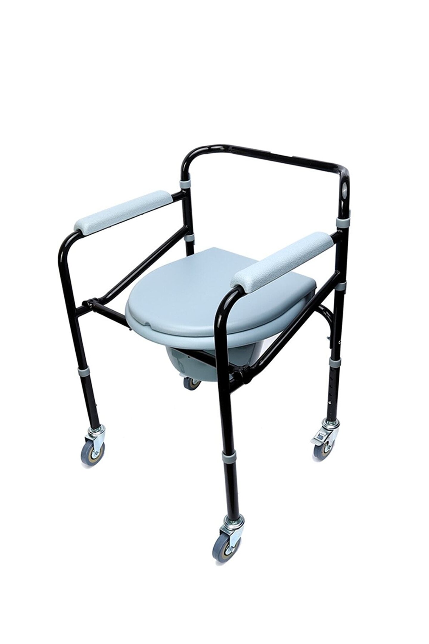 Tuvalet ve banyoda kullanılabilir.Yüksekliği ayarlanabilir ve katlanabilir.Tekerleklidir.;