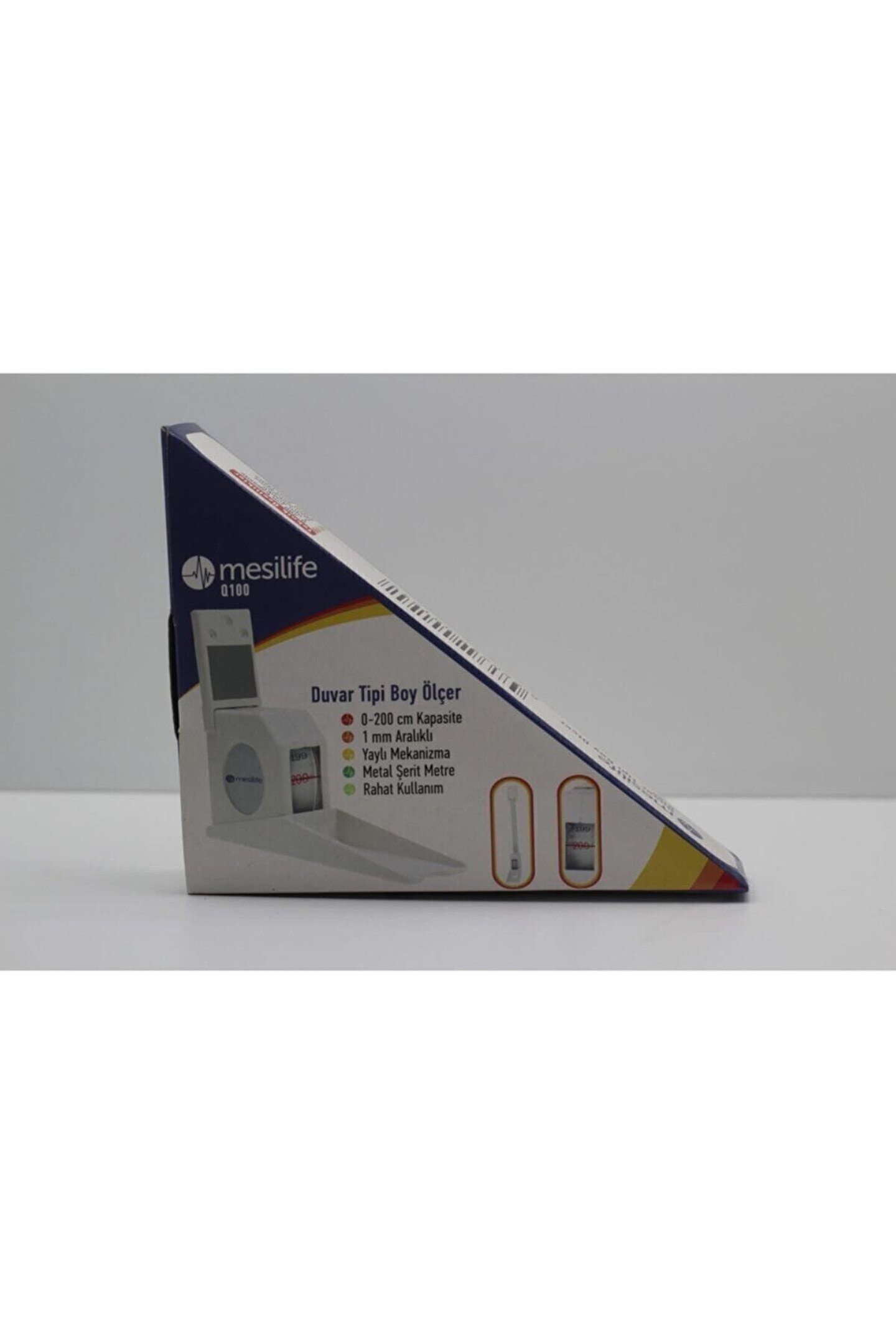 Mesilife q100 duvar tipi boy ölçer; 0; 200 cm kapasite; 1 mm aralıklı; Yaylı mekanizma; Metal şerit metre; Rahat kullanım;