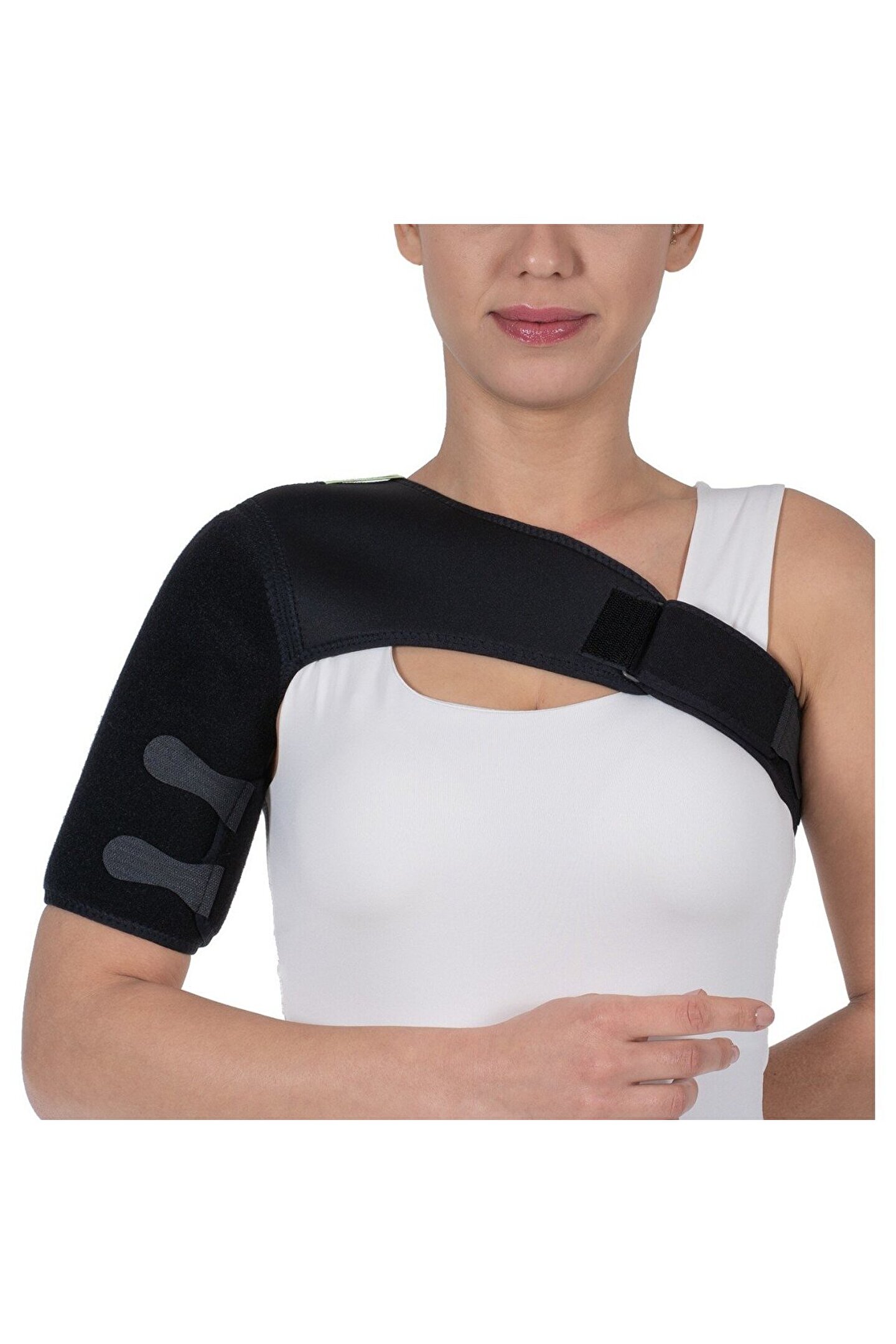 Spor aktiviteleri sonrası omuz bölgesinde oluşan ağrıları hafifletmek için kullanılan bir bandaj çeşididir. Her iki kolda uygulanabilmektedir. Yalnızca sıcak terapi için uygundur. Omuz bölgesinde uyguladaığı kompresiyon sayesinde bölgedeki ısıyı koruyan ve kan dolaşımını artıran bir omuz bandajıdır. Uygulanan baskı sayesinde ödemi engeller. Her iki kol kullanımı için uygundur. [[[ Endikasyonlar ]]] O Omuz kemikleri kırıklarında O O Omuz kireçlenmelerinde O O Omuz implant protezi uygulaması sonrası rehabilitasyonda O O Omuza sıcak kompres ihtiyacında">