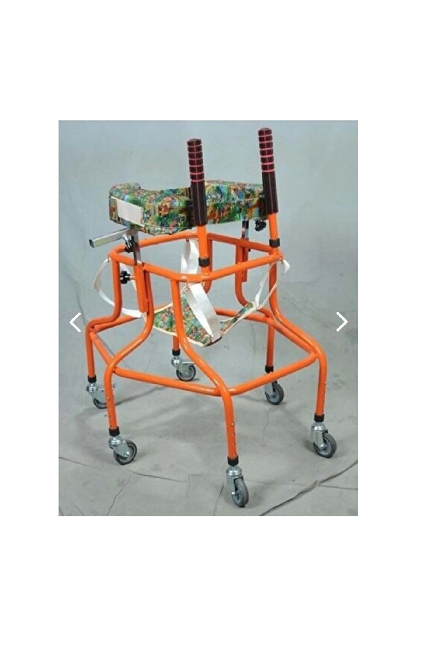 Elektrostatik toz boyalı 6 tekerlekli yürüteç 02 , 15; Bu ürünü kullanan; Cihaz sayesin çocuğun gelişen kemikleri direnç kazanır, gelişimi ve vucut yapısı Direnç kazanır,cihazın içine koyulan çocuğun önce emniyeti alınır ayaklarının arasından geçirilen aparatla ayakları yere bastırılır kolları koltuk altından cihazın kol koyulan mekanizmanın üstüne otutturulur ve hasta kendi başına bırakılır; Hasta sağa sola yürüyerek Hasta sağa sola yürüyerek Dengeli olarak hareket eder cihazın hareket ederken hastayı devirmemesi için cihazın altı adet geniş örümcek ayağı gibi ayakları olmasından dolayı her hangi bir yere çarpmasından Hastanın göreceği zararı engeller hasta sağa sola savrulmaz içinde rahat eder emniyetli olarak kullanır,cihaz tekerlek sistemli olup altı adet tekerleği mevcuttur hafif bir üründür; Yavrumuzun kasılması ve kendini atması varsa tavsiye edilmez Hastanın boyuna göre ayarlanır, yükseltilir ve alçaltılır, cihazın doksan derece hareket etme kabiliyeti mevcuttur, tekerlekli sandalye gibi Taşıma ürünü değildir; Yavrumuz kanepeye koltuğa tutunarak duvara yaslanarak ayakta duruyor ve adım atıyorsa ve velisi kendi parmaklarına yavrumuzun tutunarak ayakta tutup yürütebiliyorsa bu ürün önerilebilir; Tavsiye edilebilir;