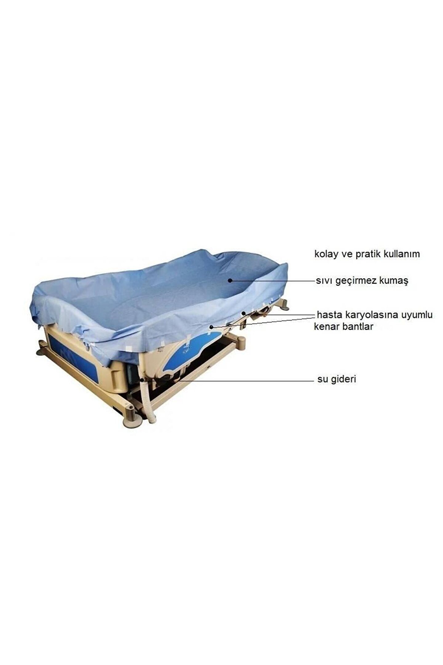Açıklama Pratik Hasta Yıkama Seti; Yatağa bağımlı hastaların kendi yatağında yıkanmasını sağlayan bir üründür. Ürünümüz içerisinde 1 adet zeytinyağlı sabun, 15 metre uzayan hortum ve 1 adet lif bulunmaktadır. Ürün 190*90 cm ebatlarında olup yüksekliği 20cm’dir. Ürünümüzde atık su gideri mevcuttur. Ürün sayesinde hastanın banyo esnasında oluşabilecek düşme,çarpma vb. olaylara maruz kalması engellenir.