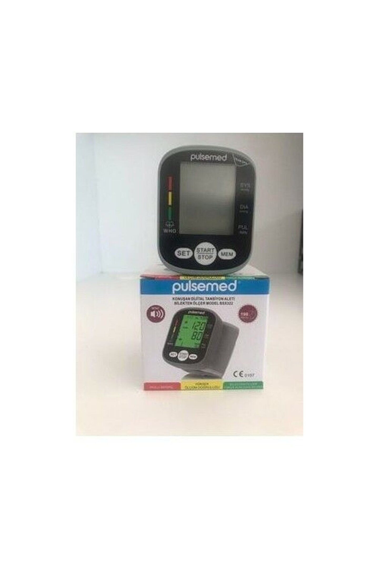 <h1>Pulsemed Konuşan Bilekten Dijital Tansiyon Aleti BSX322</h1>3 renkli görsel alarm Otomatik kapama Düşük pil göstergesi Tek tuş basit ölçüm Düzensiz kalp ritmi göstergesi WHO göstergesi Kullanma Kılavuzu Türkçedir.
