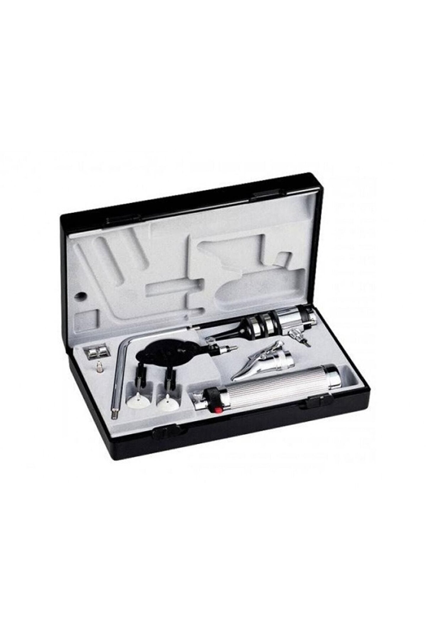 Riester 2050 Diagnostik Otoskop-Oftalmaskop Set ; ? Dünyanın en ünlü, ekonomik fiyatlı diagnostik seti.; 2,7 V standart aydınlatma ; ? Nikel krom kaplama metal otoskop başlıgı.; 2 adet lens ; ? Pnematik otoskopi için konektör.; 2, 3 and 4 mm steri edilebilir spekülümler ; ? May-ophtalmoscope head : 0 to +20 and 0 to -20 diopteri seçeneği ; ? Işık taşıyıcı :krom kaplama gövde.2.7 v ampul ile ; ? Abeslang tutucu : krom kaplama ;