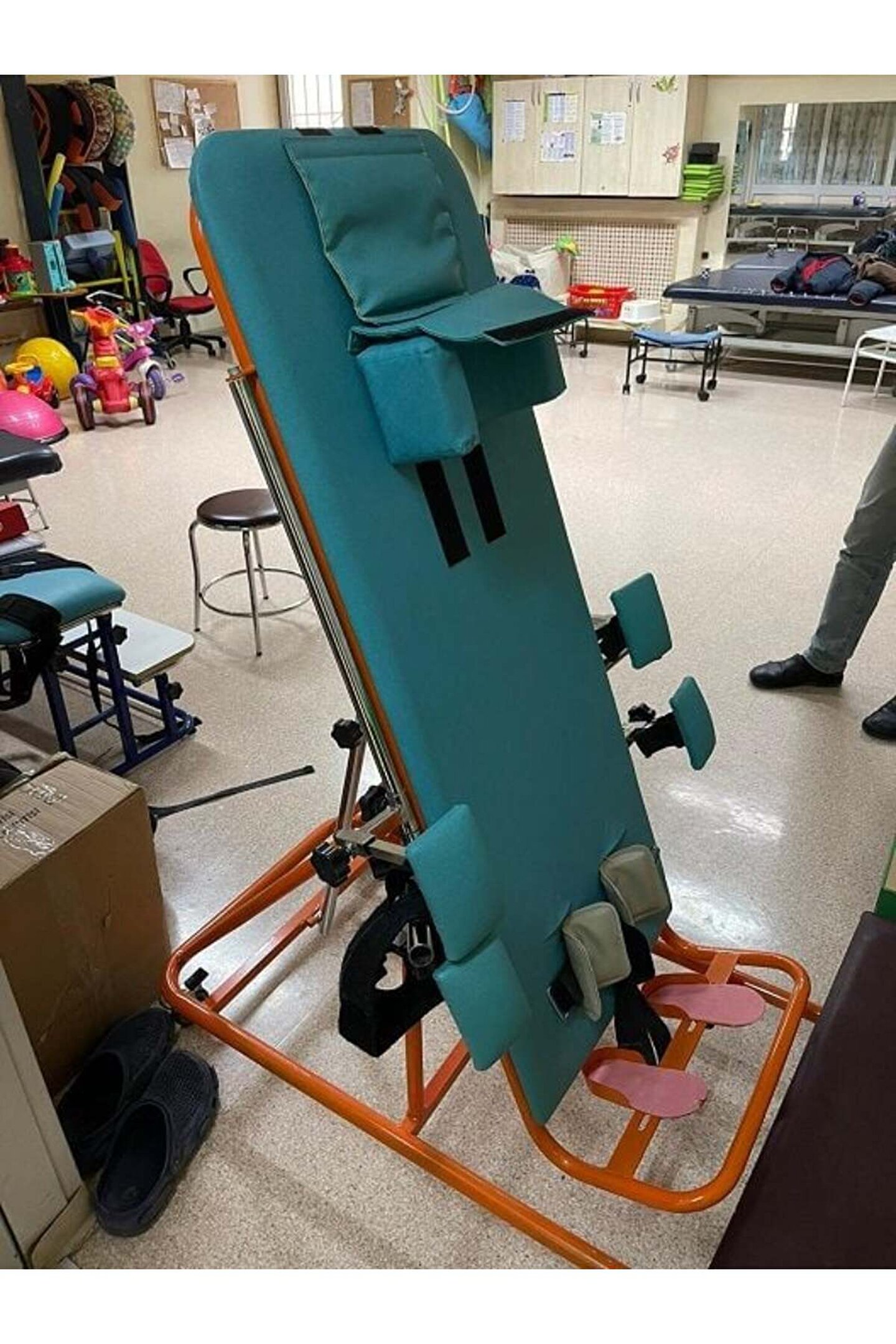 Ürün, çocuk ve yetişkin olmak üzere 2 boy olarak özel üretilmektedir. Siparişlerinizde kullanacak kişinin boyunu iletmeniz yeterli olacaktır. Ürün, hastayı yatağından kolayca alabilmek için (fotoğraf-4) sedye şekline gelebilmektedir. Ürün, hastayı dik ve kademesi isteğe göre ayarlanabilir yatar pozisyonlarda tutabilecek özellikte imal edilmiştir.Üründe kademe ayarı tamamen kullanıcı isteğine göre ve mekanik olarak ayarlanmaktadır. Ürün, 4 adet kilitlenebilir tekerlek ile kolay bir şekilde hareket ettirilebilir ve bu sayede hastayı yatağından alıp ev içinde farklı bir bölgeye götürmek mümkün olmaktadır. Ürün ayak basma yeri standart olmak zorunda değildir. Hastanın ayakkabı numarasını iletmekte veya ayak boyu ve enini ölçerek belirtmeniz gerekmektedir. Ürün alt kısmından başlayarak diz kısmını tespit eden bölge aşağı-yukarı ayarlanabilir özelliktedir. Kalça bölgesine gelen tespit kısmı yine hastaya göre içeri-dışarı hareket edebilir özellikte tasarlanmıştır. Koltuk altı bölgesinde de yine hastaya göre yakınlarının kolaylıkla ayarlayabileceği sistem mevcuttur. Not: Ürün su ile temas halinde paslanır bir ürün olduğundan banyoda kullanılacağı taktirde özenle sudan korunmalıdır. Teslimat: 7 ila 10 gün içindedir.