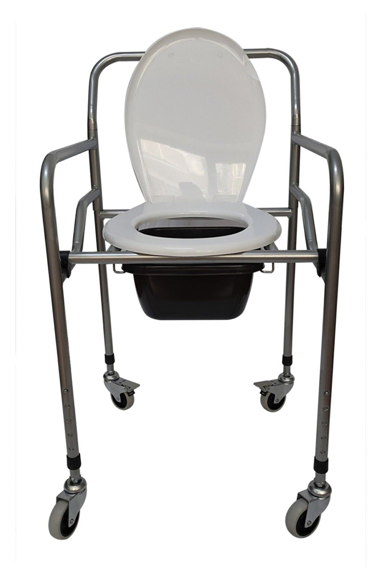 Tekerlekli Katlanabilir Seyyar Hasta Yaşlı Tuvalet Sandalyesi Klozetli Kovalı Wc Oturak
