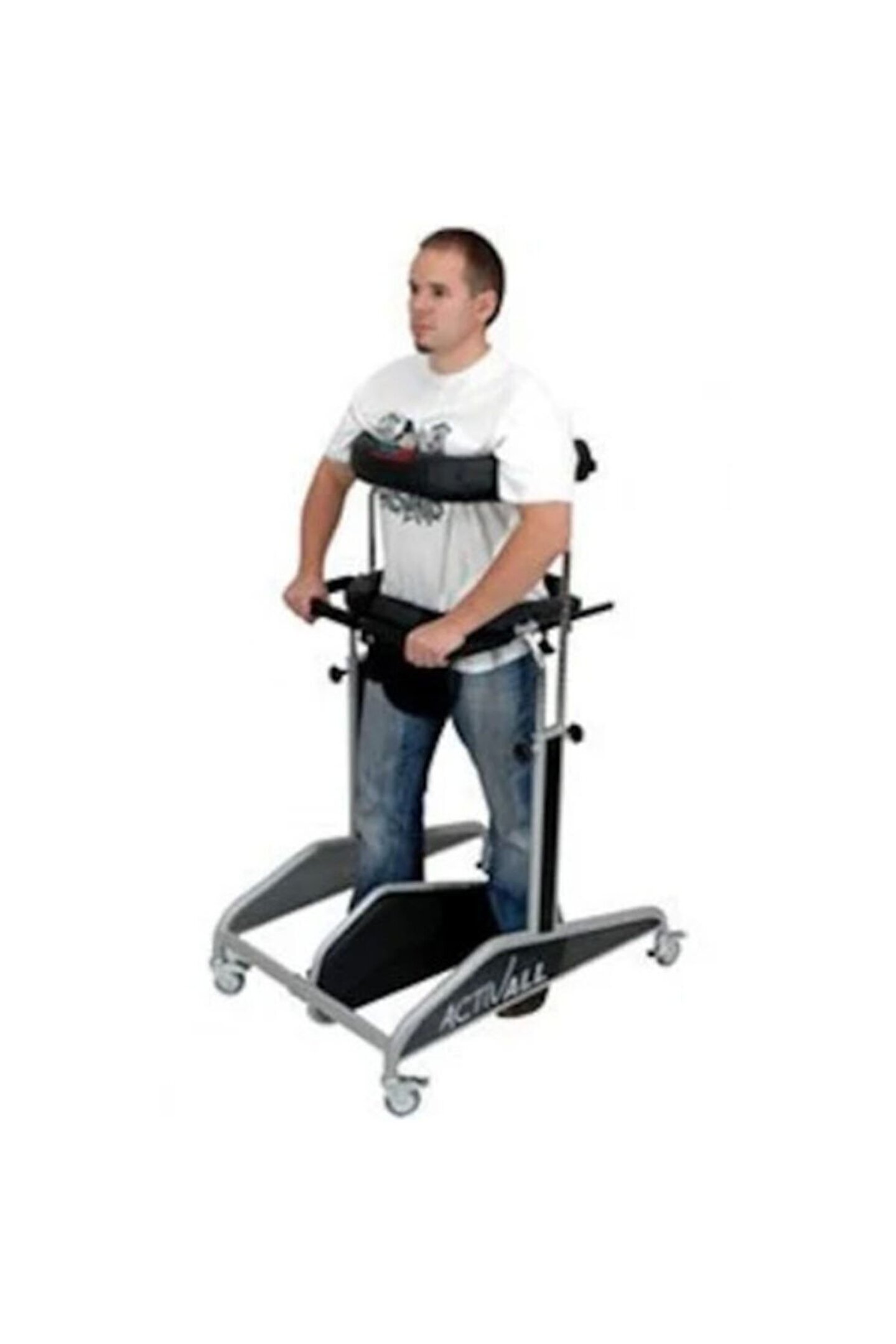 Yürüteç cihazı özellikleri belden destekli kademesi bulunmaktadır bacak arası ayarlı salıncak oturağı omuz altı destekli kademesi bulunmaktadır. Kullanıcı cihazın içine girerek belden desteklenerek emniyeti alınır. Bel destek kademesi yükseltilerek,alçaltıralak ayarlanır. Bacak arası salıncak oturağı daraltılıp genişletilebilir. Omuz altı destek kademesi alçaltılıp yükseltilerek destek yapılması sağlanır. Tekerlek ölçüleri ön ve arka tekerlekler 360 derece dönebilir özelliktedir. Tekerlek çapı 100 lük çaptadır. Arka tekerlekler fren sistemlidir. Diğer özeleklikleri; bel destek barı koltuk altı destek barı yumuşak poliraton vinleks kaplı koruma ile kaplıdır. Kullanıcının bel ve omuz altlarını zedelememek için koruma sistemlidir. Cihazın bel barının önünde cihazın çarpma koruma barı bulunmaktadır. Koruma barı ellerin tutucak barı olarakta kullanılır.