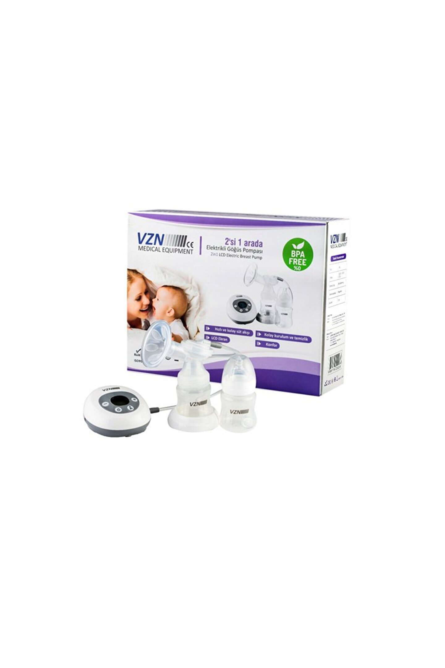Vzn Elektrikli Göğüs Süt Pompası 2'si 1 Arada Çift Biberon