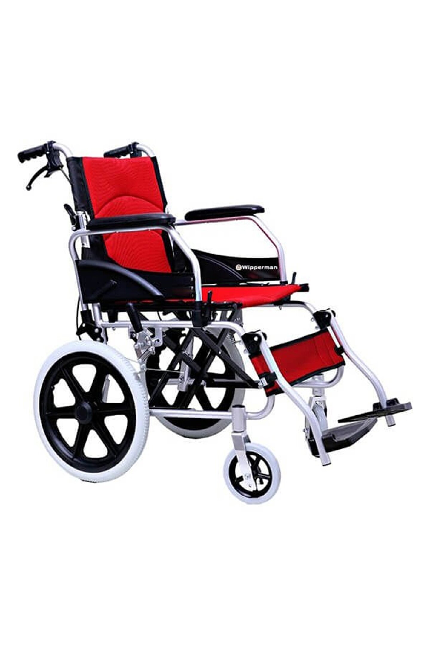 W 206 Refakatçi Frenli Katlanabilir Tekerlekli Sandalye Kırmızı Renkli