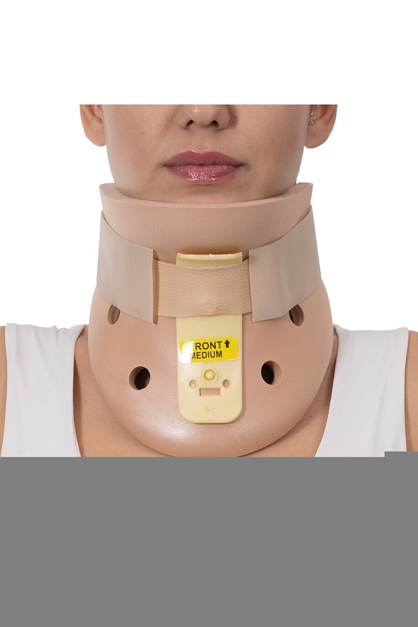 2 parçalı plastikten üretilmiş olup iç tarafında kumaş kaplı sünger destekleri mevcuttur.Üstünde bulunan 6 farklı yükseklik kademesi sayesinde 9cm ve 16 cm arasında yükseklik ayarı yapılabilir. Trakeostomi deliği açık bir boyunluktur. Endikasyonları Ameliyat sonrası immobilizasyon Yumuşak doku yaralanmaları Şiddetli servikal sendrom Servikal disk irritasyonu Omurga yapısının gevşemesi BEDEN UNIVERSAL SIZE">