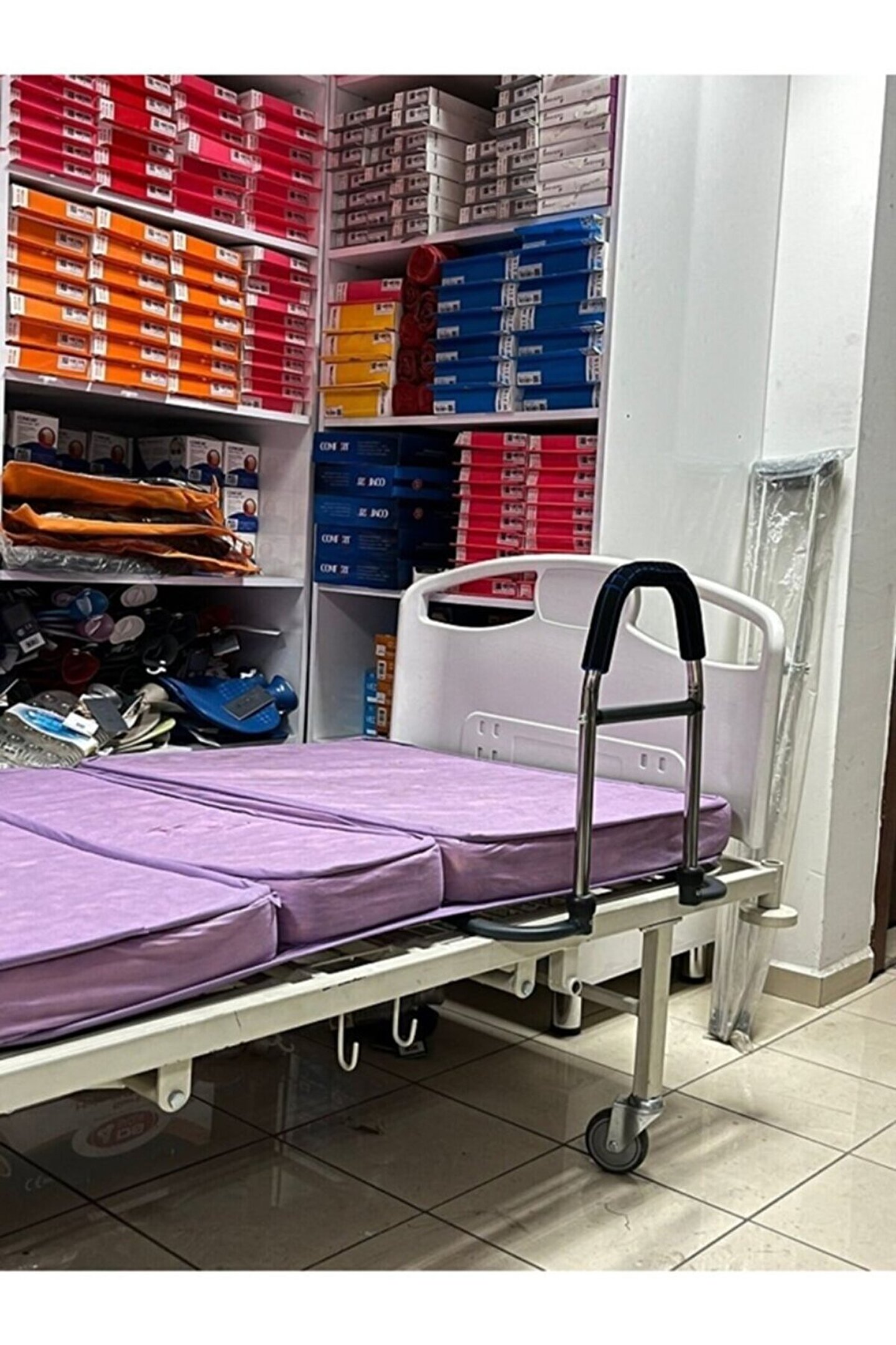 Medikal olmayan yataklarda emniyeti sağlar. Yerleştirilmesi kolay olan yatak destek barı, yatağa kolayca girmek, yataktan kolayca çıkmak ve ayrıca kullanıcının yatakta doğrulabilmesi için bir dayanaktır. Medikal yataklarda kullanıldığı gibi normal yataklarda da kullanılabilmektedir. Yatak ile karyolanın arasına yerleşir. Plastik kaplı çelikten ve kromdan yapılmıştır. 160 kg taşıma kapasitesine sahiptir. Ağırlığı: 2.5 kg. Yüksekliği: 51 cm. Genişliği: 70 cm.">