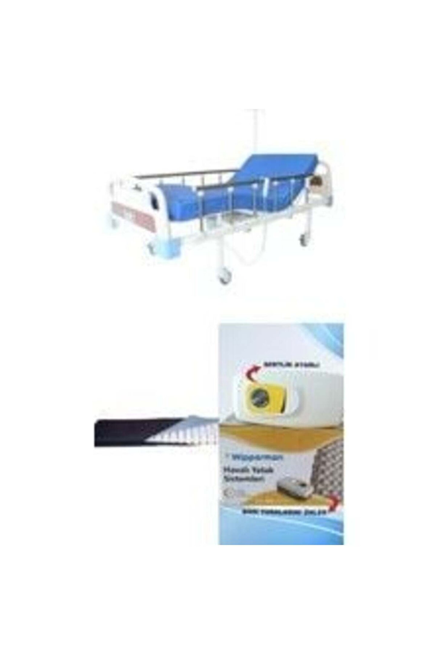 medikaltec 2 Motorlu Abs Başlıklı Tabanca Korkuluklu Hasta Karyolası Baklava Tipi Havalı Yataklı Takım