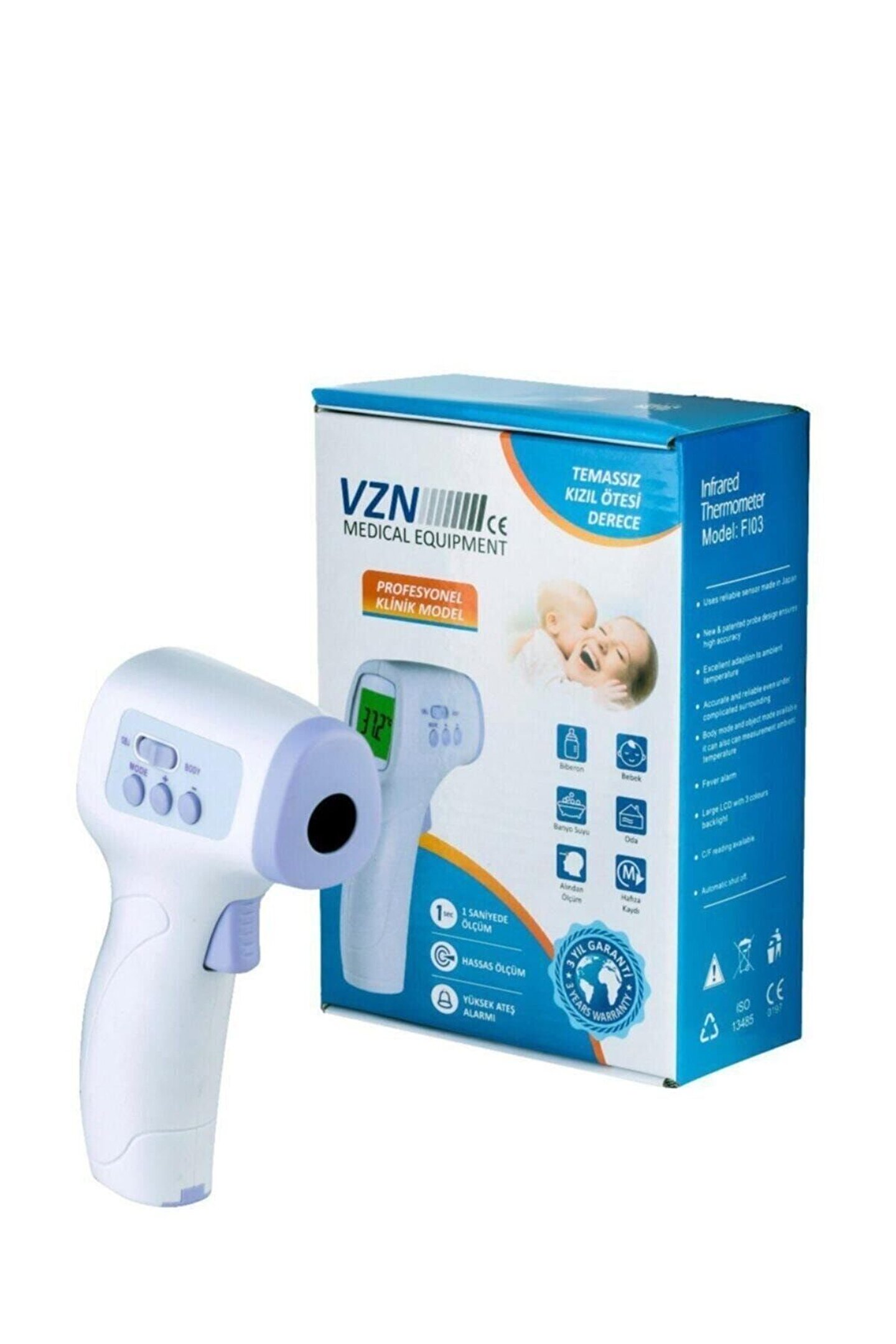 Medikaltec VZN TEMASSIZ ATEŞ ÖLÇER; 1 SANİYEDE ÖLÇÜM; YÜKSEK ATEŞ ALARMI; HASSAS ÖLÇÜM; 2 Adet Pille Çalışmakta olup, piller pakete dahildir.; Ürün test edilmek amacıyla 1 kez denenip gönderileceğinden hafızasında 1 kayıt bulunacak şekilde elinizde olacaktır.; ATEŞ ÖLÇERİN BODY YAZAN KISMI İLE VÜCUT SICAKLIĞINIZI, SURFACE MODU İLE İSE ALAN SICAKLIĞINI, BİBERON VE BANYO SUYU SICAKLIĞINI ÖLÇEBİLİRSİNİZ.; ÜRÜN CE ONAYLIDIR VE 32 ADET ÖLÇÜM HAFIZASINA SAHİPTİR.;