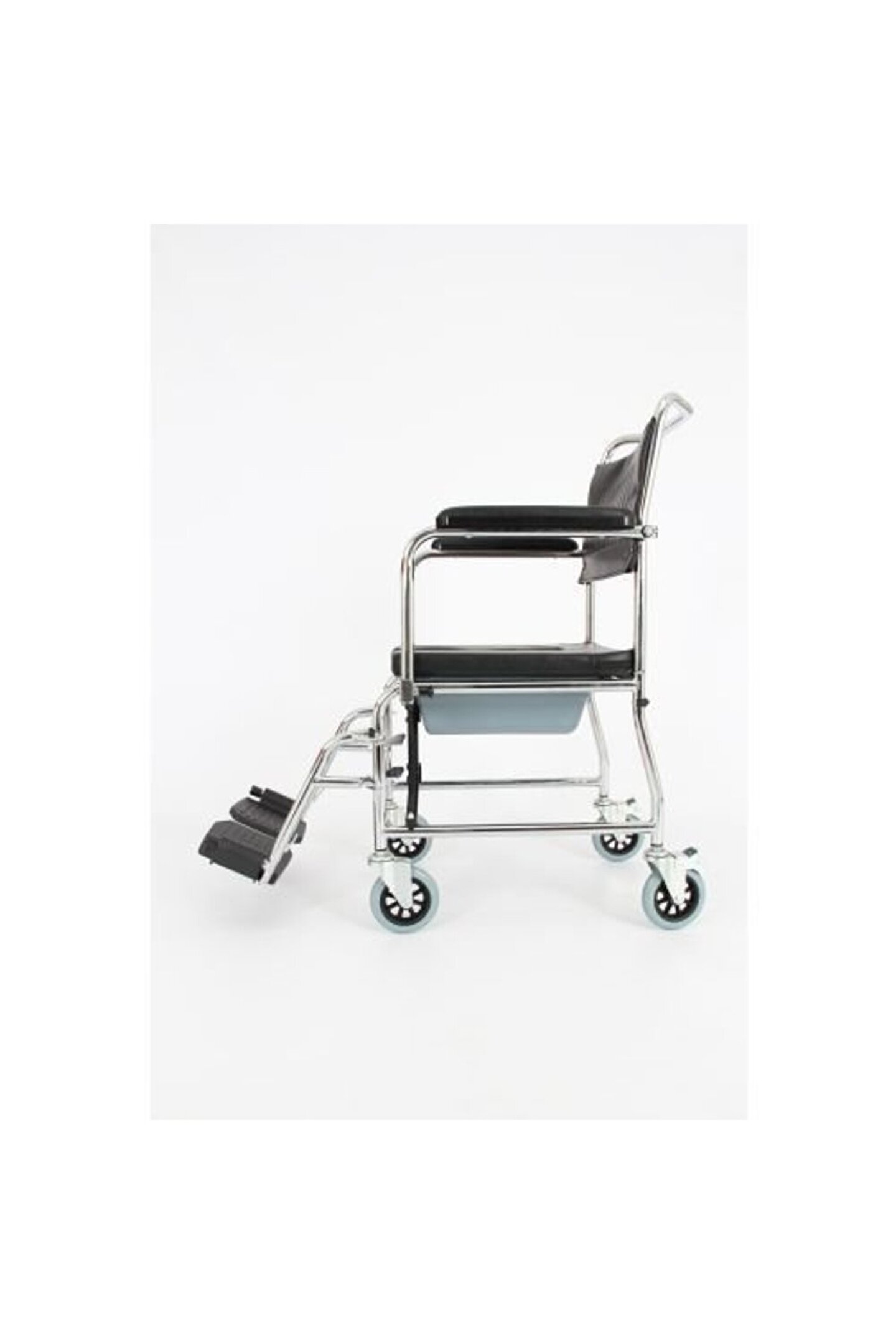 DM969 TEKERLEKLİ KOMOD Katlanabilir özelliği ile rahatlıkla taşınabilir.i Krom kaplamalı çelik şasesi ile sağlam bir iskelet oluşturur. Tuvalet lazımlığı ile klozet üzerinde olmadan da kullanılabilir. Sırtlık çıkarılabilir. Konforlu minderi sayesinde uzun süre oturulabilir. Kolçaklar aşağıya doğru hareket ettirilebilir. Ayaklıklar çıkabilir. İthal bir üründür. Teknik Özellikler Oturma genişliği: 46 cm Toplam genişlik: 55 cm Uzunluk: 80 cm Yükseklik: 95 cm Ağırlık: 10 Kg Taşıma kapasitesi: 120 Kg DM969 TEKERLEKLİ KOMOD