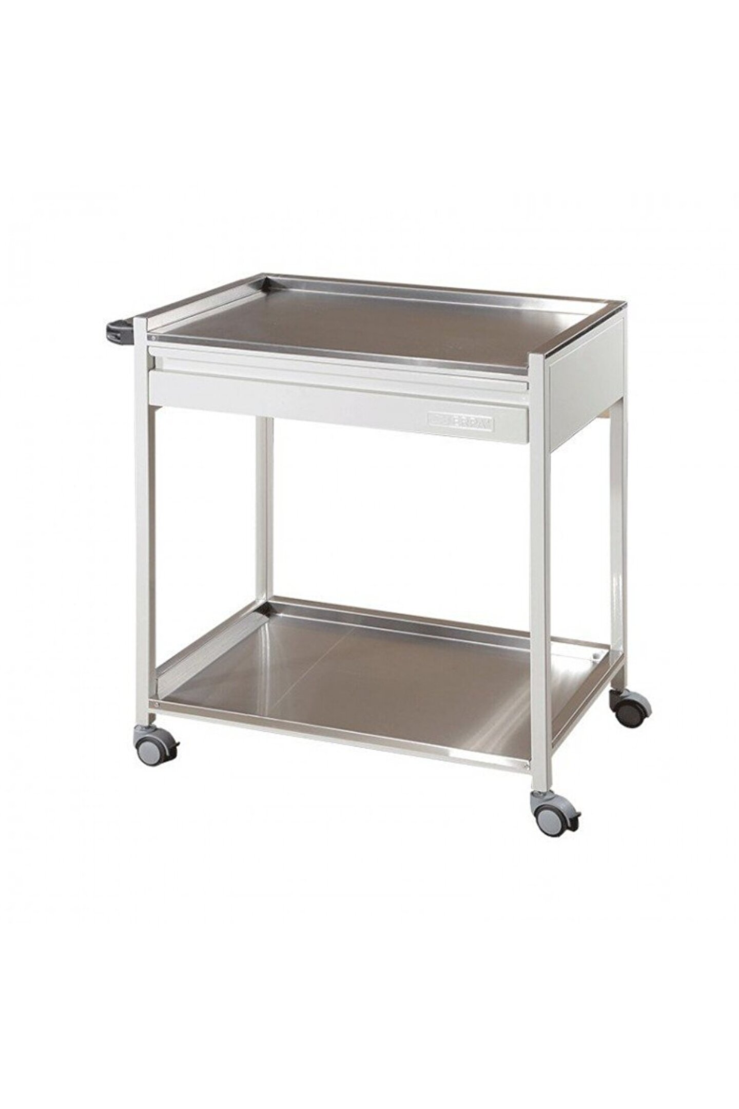 Paslanmaz Çelik Üst Ve Alt Tezgah Çekmece Cihaz Arabası Antibakteriyel elektrostatik toz boya ABS antistatik ikisi frenli dört adet teker Metal gövde 304 kalite paslanmaz çelik üst ve alt tezgah Çekmece İtme kolları 45 x 85 x 87 cm 17 kg