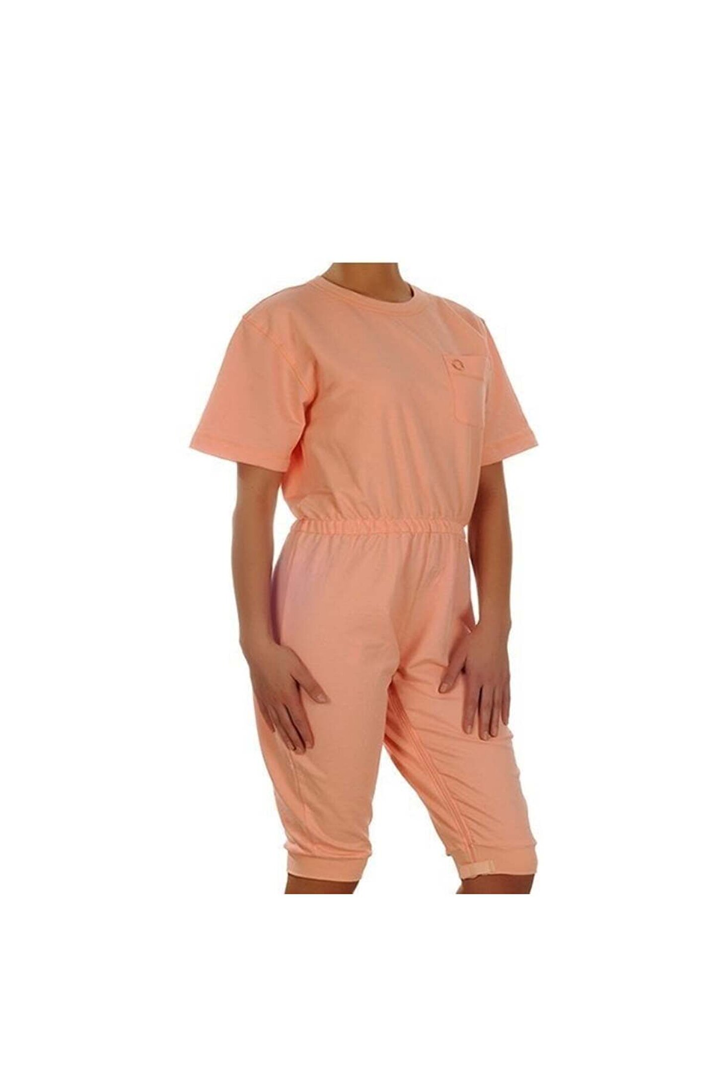 Medikaltec Hasta Bakım Tulumu Bacak Fermuarlı & Demans Hasta Bakım Tulumları, bakıma ihtiyacı olan kişilerin kıyafetlerini daha rahat ve güvenli biçimde giydirilip, değiştirilmesini sağlar. . Fermuar başlangıç ve bitiş yerlerinde kullanılan düğme ve lastikli koruma özelliği istenmeyen ve ani soyunmaları önler. Hastanın günlük temizlik bakımı ve iç çamaşırı değişimi esnasında yaşanan zorluklar ortadan kalkar. %100 Pamuklu kumaş, yumuşak dokusu sayesinde gece ve gündüz rahatlıkla giyilebilir. Bacak Kısmı Fermuarlı Bisiklet Yaka Kısa Kol Kısa Paça Bel kısmı lastikli