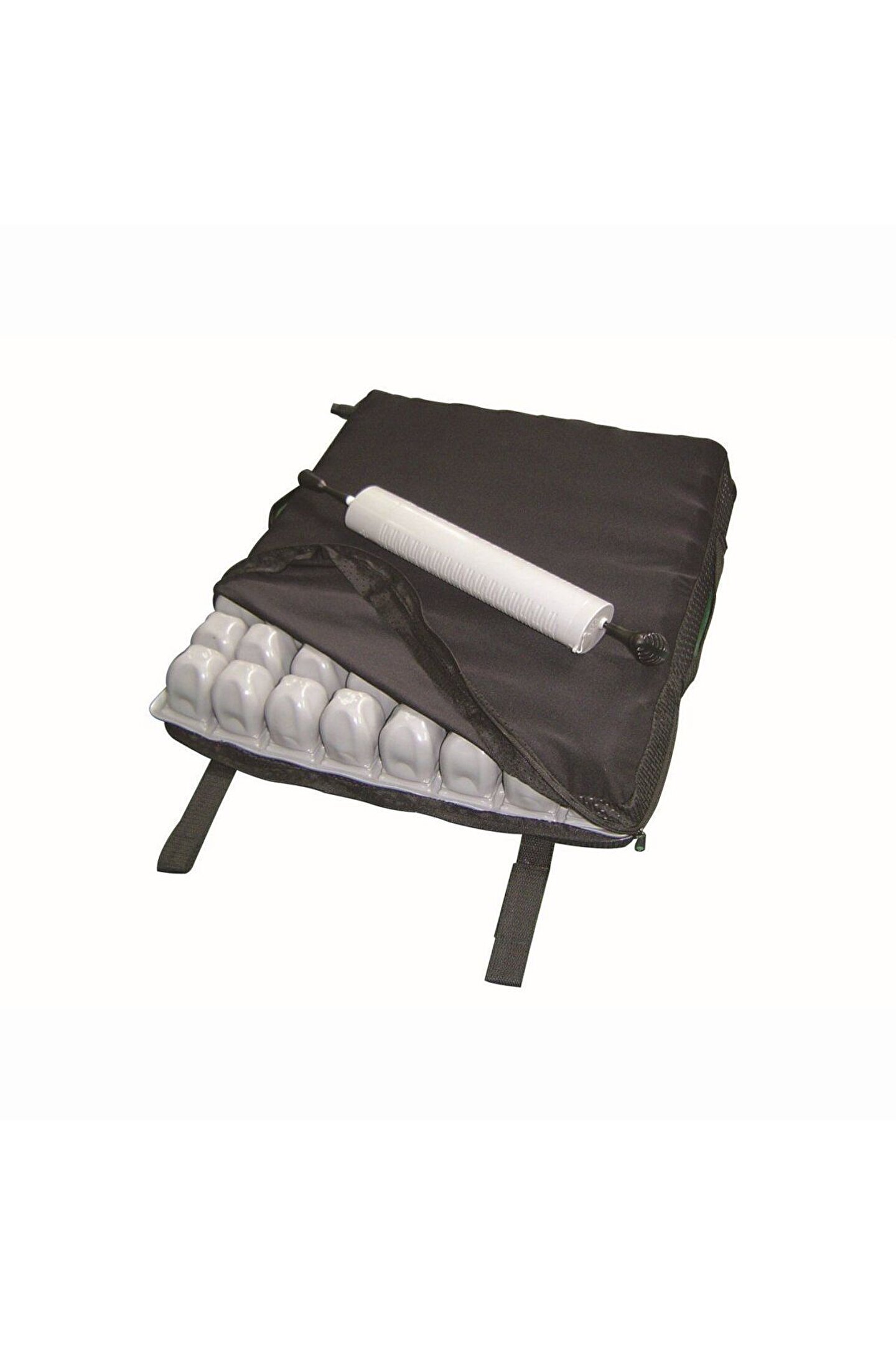 Comfort Plus Havalı Oturma Minderi Postür bozukluğu olan (otururken sağa sola kayan) standart tekerlekli sandalye kullanıcıları ile bu durumdaki tüm parapleji ve tetrapleji olan kişiler kullanabilir. Bu model sayesinde hem oturma pozisyonunuzu düzelteceksiniz hem de saatler boyunca keyifli ve güvenli bir şekilde tekerlekli sandalyenizde zaman geçireceksiniz. Ne zaman havalı minder? Dekübit ülseri (bası yarası) oluşma riski varsa Oluşmuş dekübit ülseriniz (bası yarası) varsa Saatlerce ve korkmadan tekerlekli sandalyede oturmak istiyorsanız İlk bakışta havalı minder: Postür bozukluğu olan (otururken sağa-sola kayan) standart tekerlekli sandalye kullanıcıları ile bu durumdaki tüm parapleji ve tetrapleji olanlar kullanabilir. Yüksek olması oturma konforunu maksimuma çıkartırken, oturmaktan kaynaklı yara riskini de minimuma indirir. Saatlerce otursanız da yara oluşumu riskine karşı sizi korumaya devam eder. Genel Özellikler: Basıncı yüzeye eşit yayma özelliği Kauçuk'dan üretilmiş olma özelliği Yara önlemeye ve postür düzenleye yardımcı olur Oluşmuş yaranın ilerlemesini engelleye yardımcı olur Çarprazlama kuru hava dolaşımlı hücre sistemi Yıkanabilir kılıf % 80'e kadar tamir edilebilme özelliği Minder kılıfının üst yüzeyi 2 yöne uzamaya müsait olup, ıslaklığı bir alt tabakaya geçirme özelliğine sahiptir. Bu sayede kullanıcının oturma bölgesi kuru kalır ve sürtünmeden dolayı doku tahribatı önlenmiş olur Her kutuda tamir kiti ve pompa bulunur Her kullanıcınn ağırlığına göre ayarlanabilme özelliği vardır Kullanıcıya uygun farklı boyutları mevcuttur Ürün bir adet pompa, bir adet özel kılıf ve küçük bir onarım kiti ile gelir. ÖLÇÜLERİ: -45 x 40 x 6 cm -40 x 40 x 6 cm -45 x 40 x 8 cm -40 x 40 x 8 cm -45 x 40 x 10 cm -40 x 40 x 10 cm.