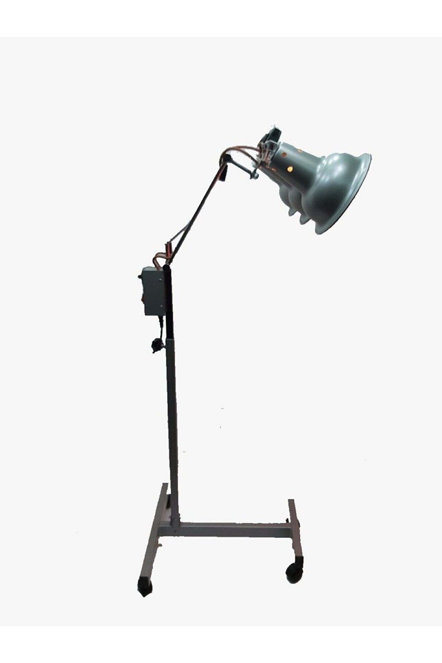 Üçlü Seyyar Enfraruj Lamba Tanım Tanım * 0-60dk zaman saati ile istenilen zamana ayarlanıp zamanı dolunca kapanma özelliğine sahip. * Üzerindeki sinyal lambası ile cihazın açık veya kapalı olduğu takip edilebilir. * Lambanın kafa kısmında bulunan tutmaç ile güvenli şekilde temas edilebilinir. * Lambanın direk kısmında bulunan ayar vidalarıyla istenilen şekilde ve açıda hastaya uygun olarak pozisyonlandırılabilir. * 360 derece dönme özelliğine sahip tekerlekler ile kolay taşınılabilir. Ortalama 7kg ağırlığındadır. * Üzerinde üç adet ampul takılacak yer vardır. 3 Adet Enfraruj Lambanın gücü 750 watt'tır. * Ürün 220 V 50 Hz Şehir Elektriği ile çalışmaktadır. * Üzerinde Ultraviyole(UV) ve Enfraruj(IR) ampulleri çalıştırabilir.