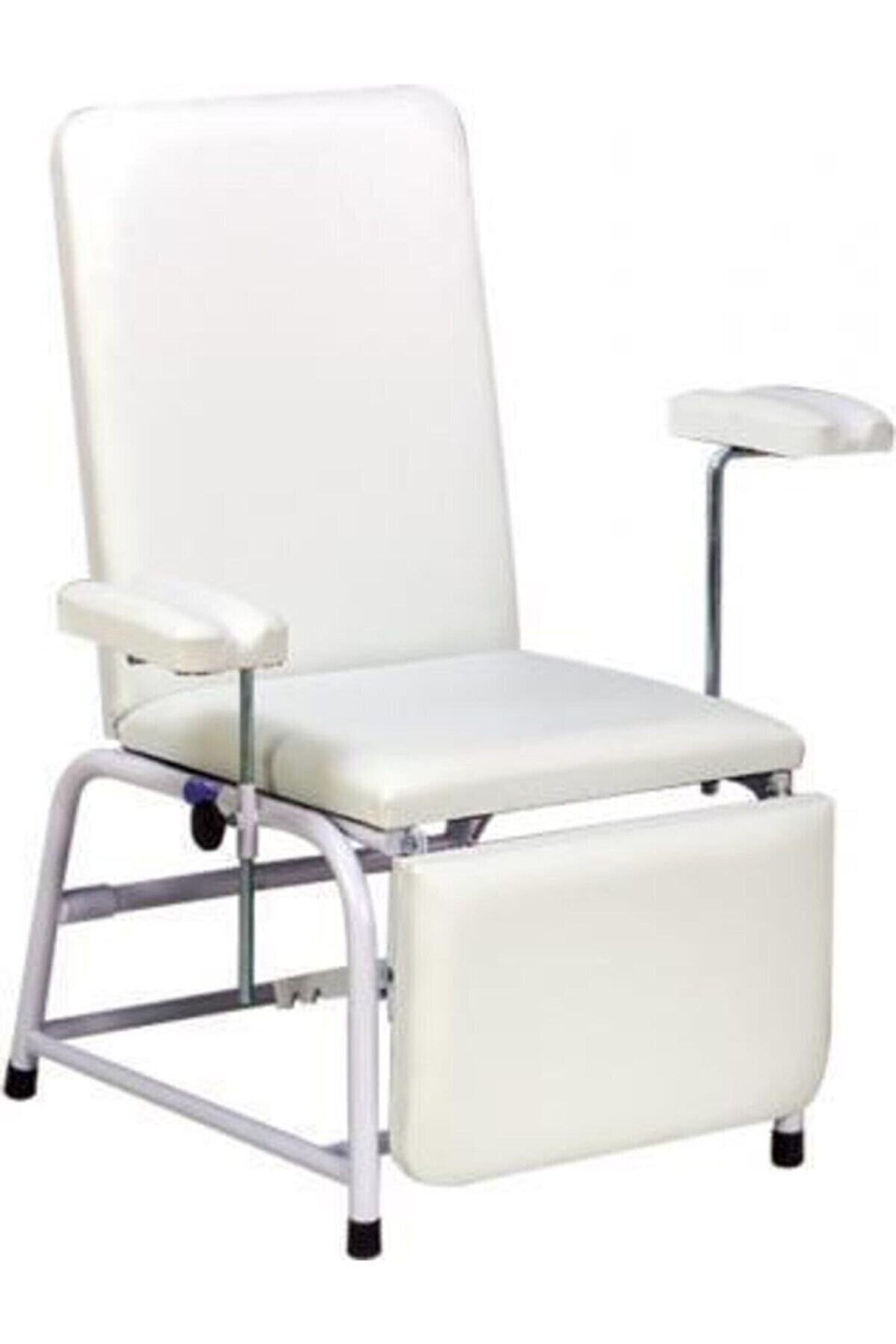 Kan alma koltuğu kan alma koltuğu (çift kollu) • sırt kısmı manuel mekanizma ile ayarlanabilir. • ayak ucu kısmı manuel mekanizma ile ayarlanabilir. • yatak platformu yüksek yoğunlukta sünger üzeri vinleks kaplıdır. • iki adet kol destek aparatı bulunmaktadır. • tüm metal aksamı elektrostatik toz boya ile kaplanmıştır. Dış ölçüler: En: 620mm - Boy: 1650 mm - Yükseklik: 500 mm yatak platformu: En: 560mm – boy: 1650mm