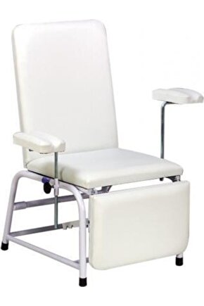 Kan Alma Koltuğu Kan Alma Koltuğu (Çift Kollu) • Sırt kısmı manuel mekanizma ile ayarlanabilir. • Ayak ucu kısmı manuel mekanizma ile ayarlanabilir. • Yatak platformu yüksek yoğunlukta sünger üzeri vinleks kaplıdır. • İki adet kol destek aparatı bulunmaktadır. • Tüm metal aksamı elektrostatik toz boya ile kaplanmıştır. DIŞ ÖLÇÜLER: En: 620mm - Boy: 1650 mm - Yükseklik: 500 mm YATAK PLATFORMU: En: 560mm – Boy: 1650mm