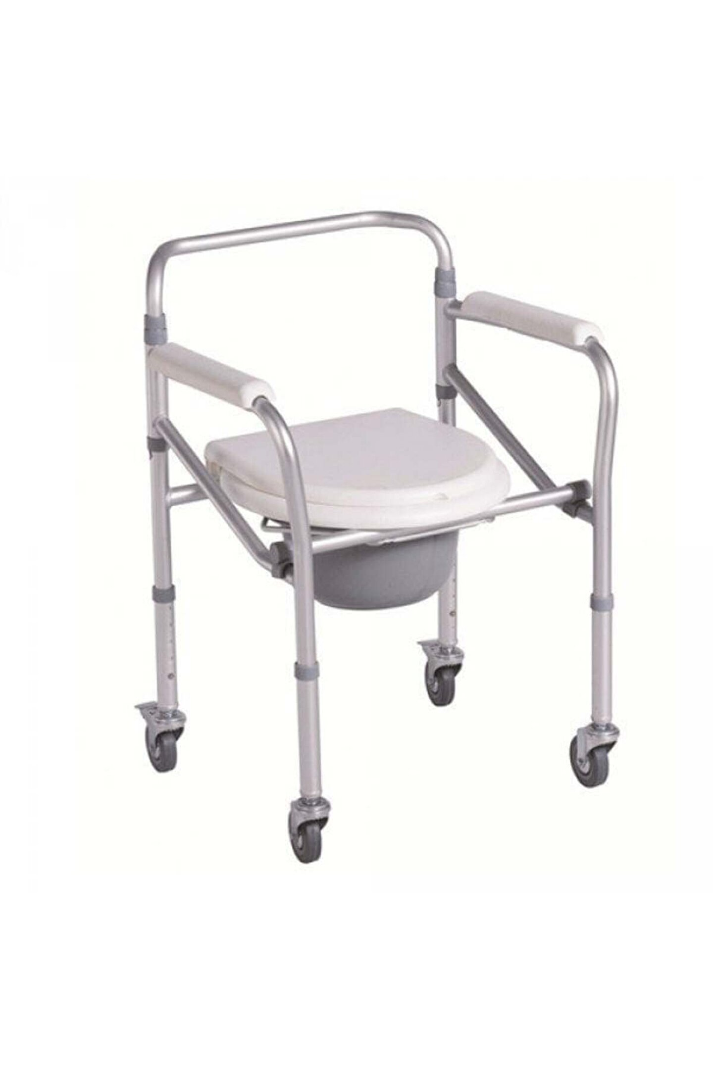 Klozet Yükseltici İthal HASTA TUVALETİ SANDALYE Klozet Yükseltici İTHAL HASTA TUVALETİ SANDALYE Katlanabilir metal kasa Plastik WC Aparatı Sabit kolçaklar Kademeli yükseklik ayarı.
