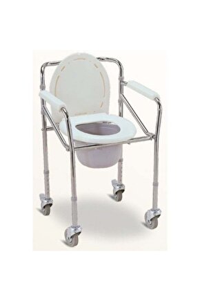 Katlanabilir özelliktedir. Kromaj kaplı çelikten üretilir. lazımlığI BULUNUR Klozet uyumlu bir modeldir. Taşıma kapasitesi 120 Kg Arka tekerleklerinde kilitlenebilir fren sistemi bulunur. 5 kademeli olarak yükseltilebilir. tuvalet banyo ev içi taşıma sandalyesi olarak kullanılabilir.
