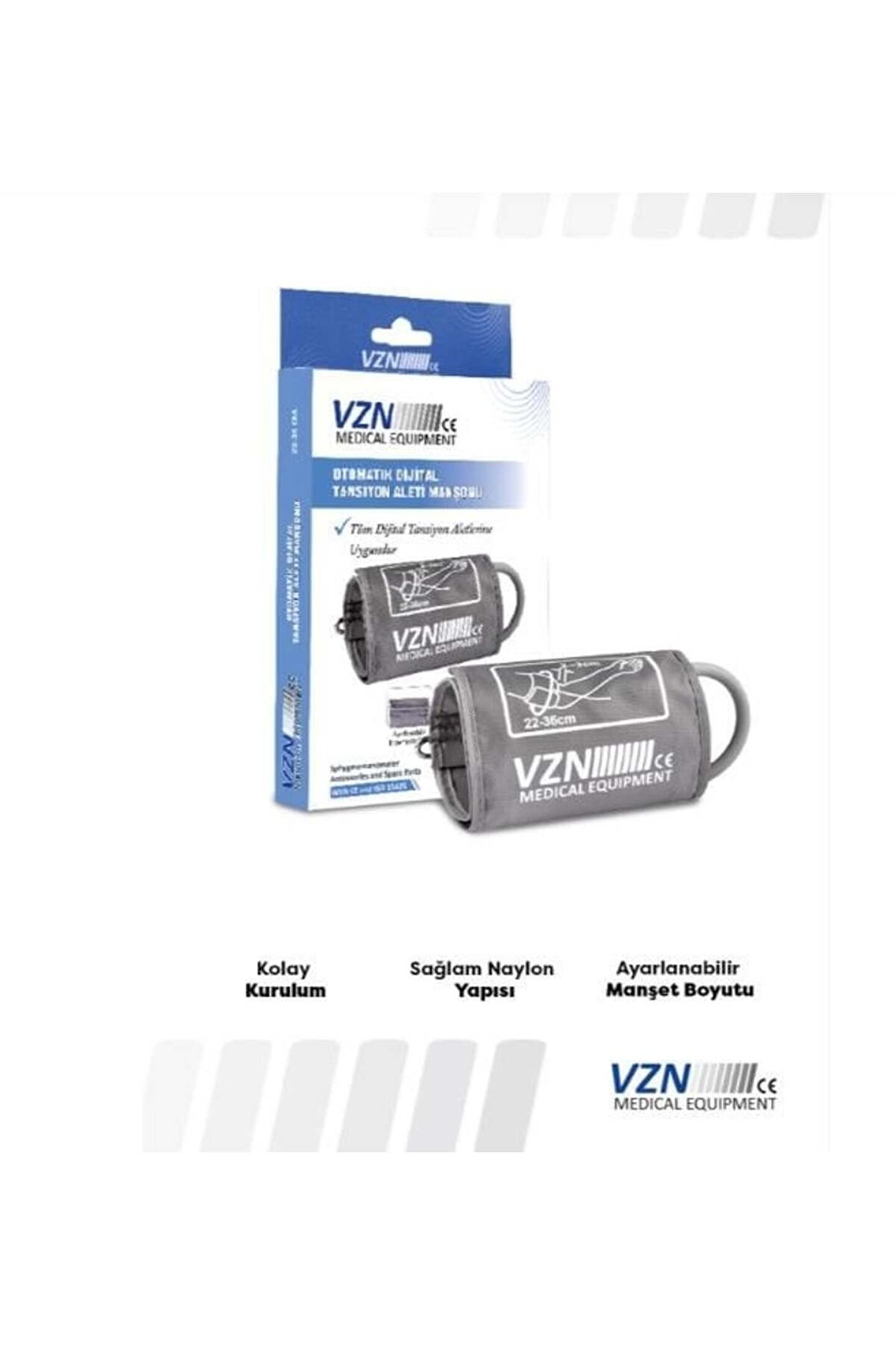 Medikaltec Otomatik Dijital Tansiyon Aleti Kol Manşonu VZN Otomatik Dijital Tansiyon Aleti Yedek Manşon, tüm dijital tansiyon aletlerine uyumlu bir üst kol manşonudur. ; Düz konnektöre sahip olan manşon, kolay kurulum imkanı sunar ve aşınmış veya hasar görmüş tansiyon aleti manşonlarının değiştirilmesini kolaylaştırır. ; Lateks içermeyen dayanıklı naylon malzemeden üretilmiştir ve standart kol ölçülerine uyacak şekilde tasarlanmıştır. ; Ayrıca, D halkası sayesinde kolunuza göre ayarlaması da oldukça pratiktir.;