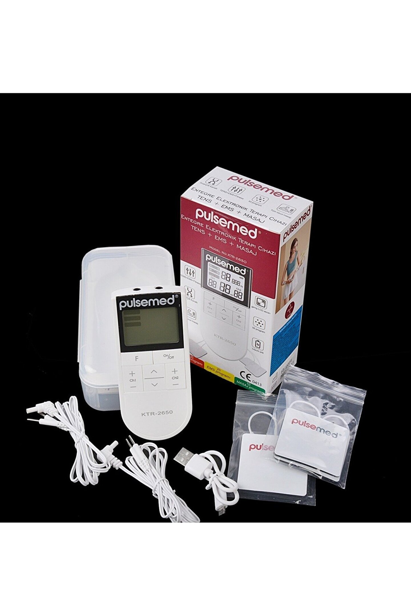 Pulsemed Tens Ems Cihazı KTR; 2650 Pulsemed Tens Ems Cihazı KTR; 2650 Tens + Ems + Masaj Özellikli 50 Adet Program Geniş LCD Ekran Çift Kanallı Lityum Pil 15/30/45dk zaman ayarlı 5*5cm elektrot ölçüleri Darbe şekli kare dalga Sinyal genişliği TENS: 120ms / EMS: 200ms / Masaj: 200ms Taşıma için plastik sert kutu;