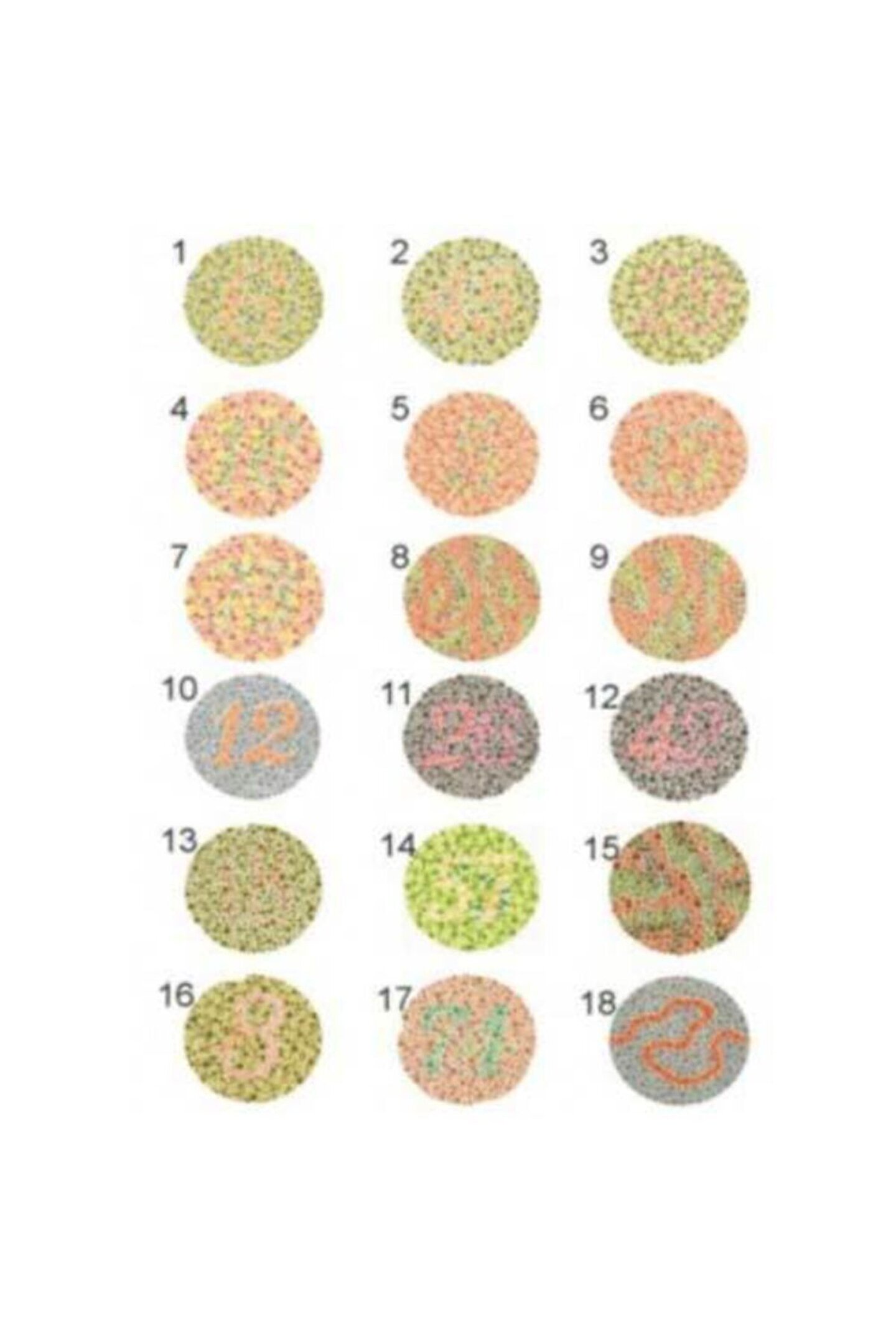 Renk Körlüğü Test Skalası Özellikleri; Duvara askı aparatı ile birlikte gönderilir. Vinleks malzemeden üretilmiştir. Ebatlar; En; 29CM Boy; 70CM Renk Körlüğü nedir? Renk körlüğü, kadınlardan fazla erkeklerde görülen, oldukça yaygın bir durumdur. Renkleri ayırt etme yeteneğinin bozukluğudur. En fazla görülen tipi, kırmızı ile yeşilin ayırt edilememesidir. Ender görülen bazı vakalarda ise bütün renklerin ayırt edilememesi ve dünyanın siyah – beyaz görülmesi söz konusudur. Her 20 erkekten ve her 200 kadından birinde vardır. Renk Körlüğü çeşitleri; Kırmızı renge duyarlı olan koni hücreleri yok ise (Protonopia) kırmızı renk körlüğü, Mavi renge duyarlı koni hücreleri yok ise, (mavi renk körlüğü), Yeşil renge duyarlı koni hücreleri yok ise, (Deuteranopia) yeşil renk körlüğü, Kırmızı rengi ayırt eden koni hücresinin olmadığı bir durum olan protonopia renk körlüğünde sadece koyu kırmızı renk algılanmayacaktır. Kişinin gördüğü renkler koni hücreleri durumu ile ilgili olarak yeşil, mavi ve bu iki rengin karışımıyla görülen renkler olacaktır. Yeşil ayrımı yapan yeşile duyarlı konilerin bulunmadığı deuteronopia renk körlüğü durumunda ise, yalnızca kırmızı ve mavi renkler ile bunların karışımı görülecek. Yeşil renkler ayırt edilemeyecektir. Yalnızca tek renk konisinin mevcut olduğu durumlarda , diğer iki renk koni sinin olmadığı renk görme sorununa monokromatik renk körlüğü denmektedir.Örnek verecek olursak sadece mavi rengi algılayan mavi renk konilerinin mevcut olduğu bir durumda, kırmızı ve yeşil renk konilerinin bulunmadığı durumlarda kişi yeşil ve kırmızı renkleri ayırt edemeyecektir. Monokromatik renk körleri sadece mavi ve sarı renkleri tanımlayabildiğinden, bu durum kırmızı-yeşil renk körlüğü olarak adlandırılabilir.