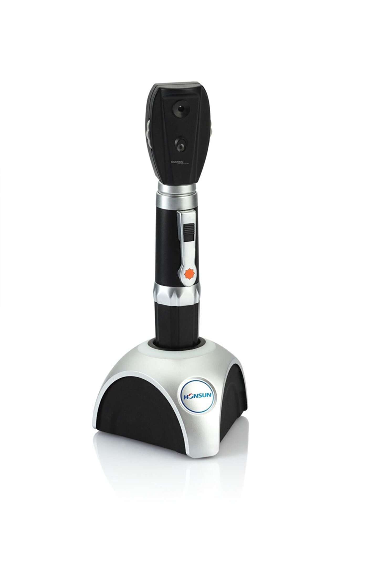 Honsun şarjlı masa tipi oftalmoskop set ürün özellikleri. Xenon halojen teknolojisi ile ?beroptik aydınlatma. -20 d den +20 d'ye kadar uyumlu lens dizisi. 5 farklı ışık demeti. Dayanıklı ve temizliği kolay Şarjlı batarya ve ışık uyarılı masa üstü batarya şarj istasyonu.