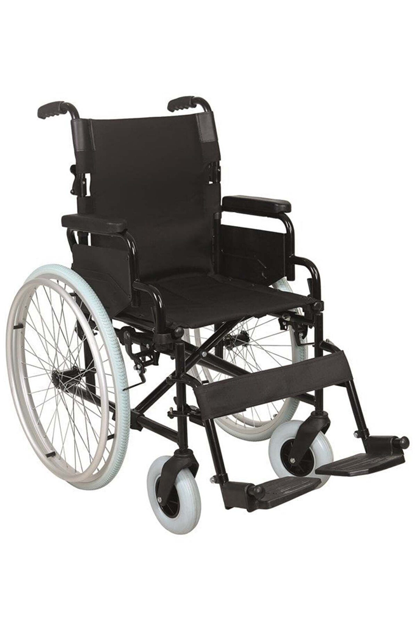 Medikaltec Tekerlekli Sandalye Kalın Ön Teker 8014 Kolayca katlanabilir özellikli manuel tekerlekli sandalye, açılan, çıkarılabilen ve alçaklık; yükseklik ayarı yapılabilen kolçaklar, Gerektiğinde refakatçi kullanımına uygunluk, Çıkarılıp, temizlenip takılabilen koltuk döşemesi, Katlanabilir sırtlık, Sökülebilen arka tekerler, Geriye düşmeyi engelliyen anti; tipper sistemi, Alüminyum şase, Renk seçeneği :Metalik Gümüş gri;