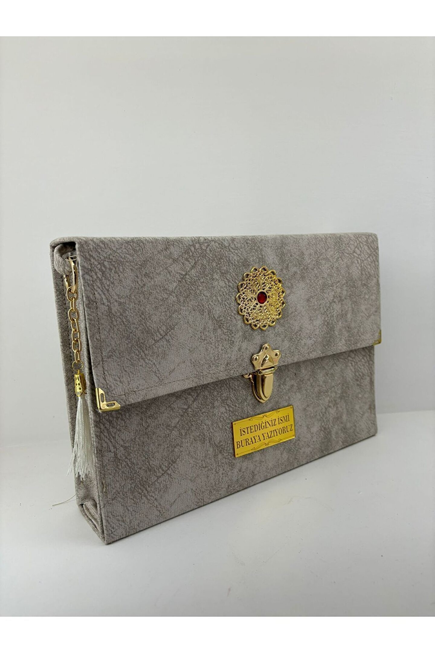 Hatim Cüzü Hatim Seti 30 cüz Rahle Boy 20 x 28 cm Nubuk Kadife Kaplı Mübarek günlerde, mukabelelerde, Kur’ân Kurslarında, mevlidlerde taziye evlerinde topluca ve kısa sürede hatim yapabileceğiniz pratik ve kullanışlı bir settir.; ; Cüzlerimizin her sayfasında buluna QR kodu, akıllı telefon ve tabletlerinizden okutarak ilgili sayfanın Arapça okunuşunu ve Türkçe Mealini sesli olarak dinleyebilirsiniz.; ; Diyanet İşleri Başkanlığı Mushafları İnceleme ve Kıraat Kurulundan Onaylı ve Mühürlü Ürünümüz Çantalıdır.; ; Çantası Lüks Nubuk Kadife kumaş ciltlidir.; ; Metal madalyonlu,Paslanmaz Metal Aksam ve askılıdır.; ; Kur'ân-ı Kerîmimizin otuz cüz'ü ayrı ayrı hazırlanmıştır.; ; Bilgisayar hatlı olup kolay okunabilen iri yazılı font ile yazılmıştır.; ; Lüks Karton Kapak 1.Hamur Şamua Kağıt ÜRÜN ÜZERİNE İSİM YAZMAMIZI İSTiYORSANIZ LÜTFEN SİPARİŞİ VERDİKTEN HEMEN SONRA SİPARİŞ NO VE YAZILACAK METNİ BİRLİKTE MESAJLA İLETİNİZ !;