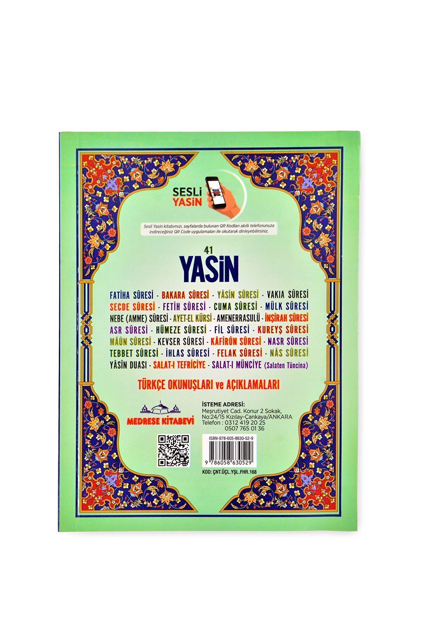Tekil ürün olarak sunulan bu cüz, Yasin Sûresi'nin tamamını içeren 168 sayfalık hacimle, özel günlerde hediye olarak tercih edilebilir; Normal boyutu (12; 16 cm) ile rahat taşıma ve okuma imkanı sağlar; evde, seyahatte veya namaz esnasında kullanım için idealdir; Kolektif yazar kadrosu tarafından hazırlanan bu eser, dil bilgisi ve okuma kolaylığı açısından Türkçe basım diliyle dikkat çeker; Mevlüt, hac ve cenaze gibi özel günlerde hediye olarak verilebilecek bu cüz, manevi değeri yüksek bir hediye seçeneği sunar;