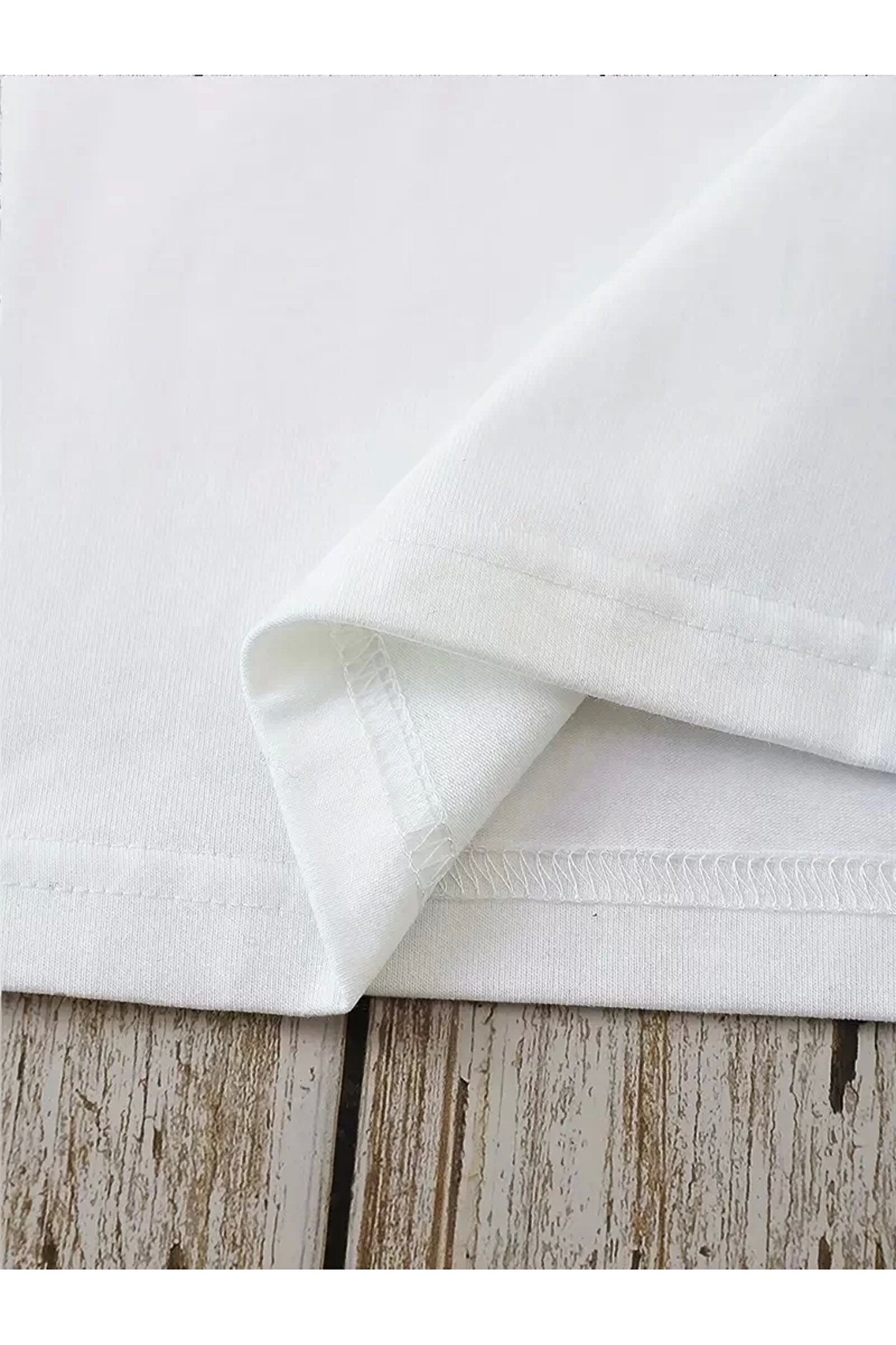 Megstill 201 Penye Compack Dark Angel Baskılı Oversize Kısa Kol Yazlık T-shirt- Beyaz