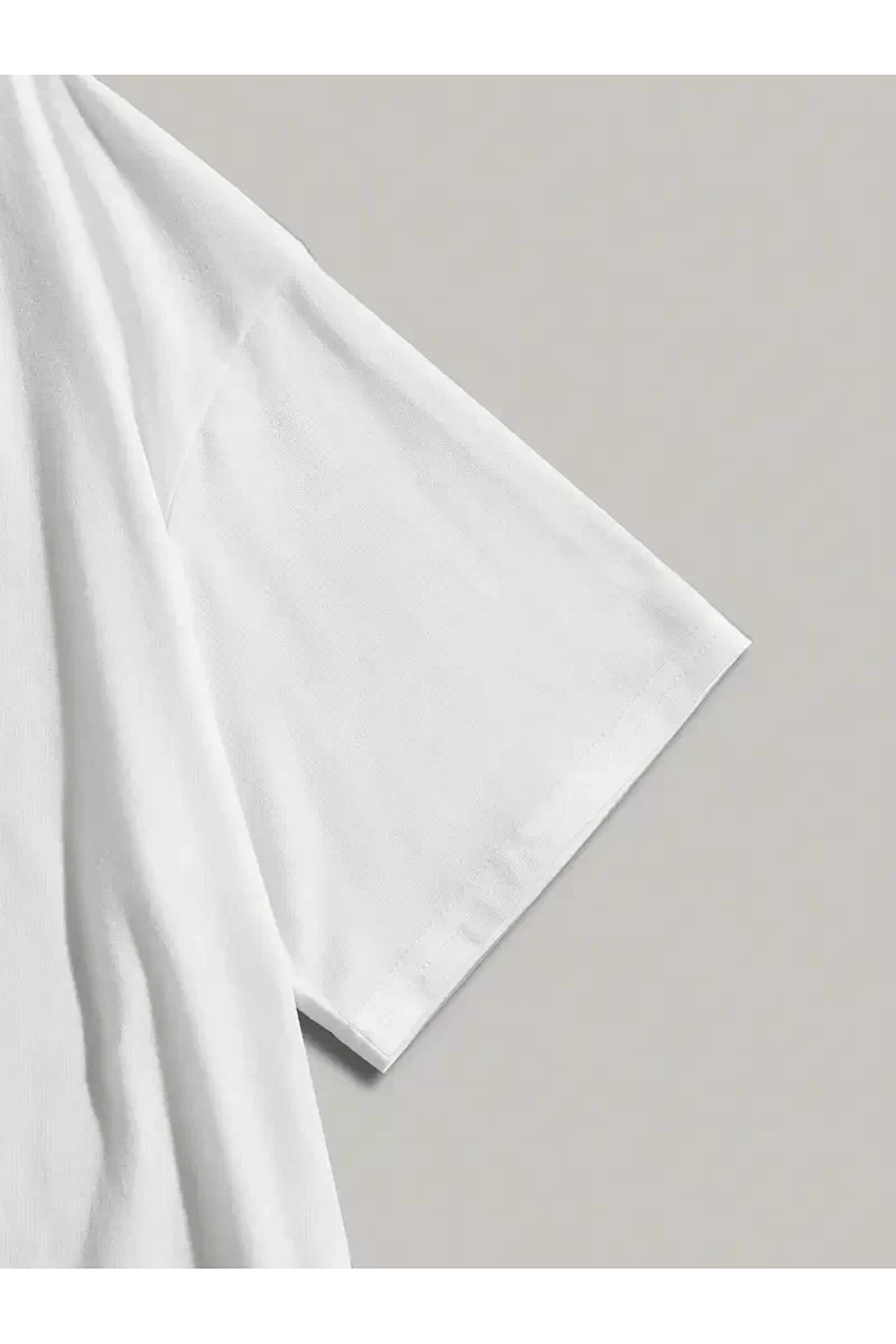 Megstill 201 Penye Compack Dark Angel Baskılı Oversize Kısa Kol Yazlık T-shirt- Beyaz
